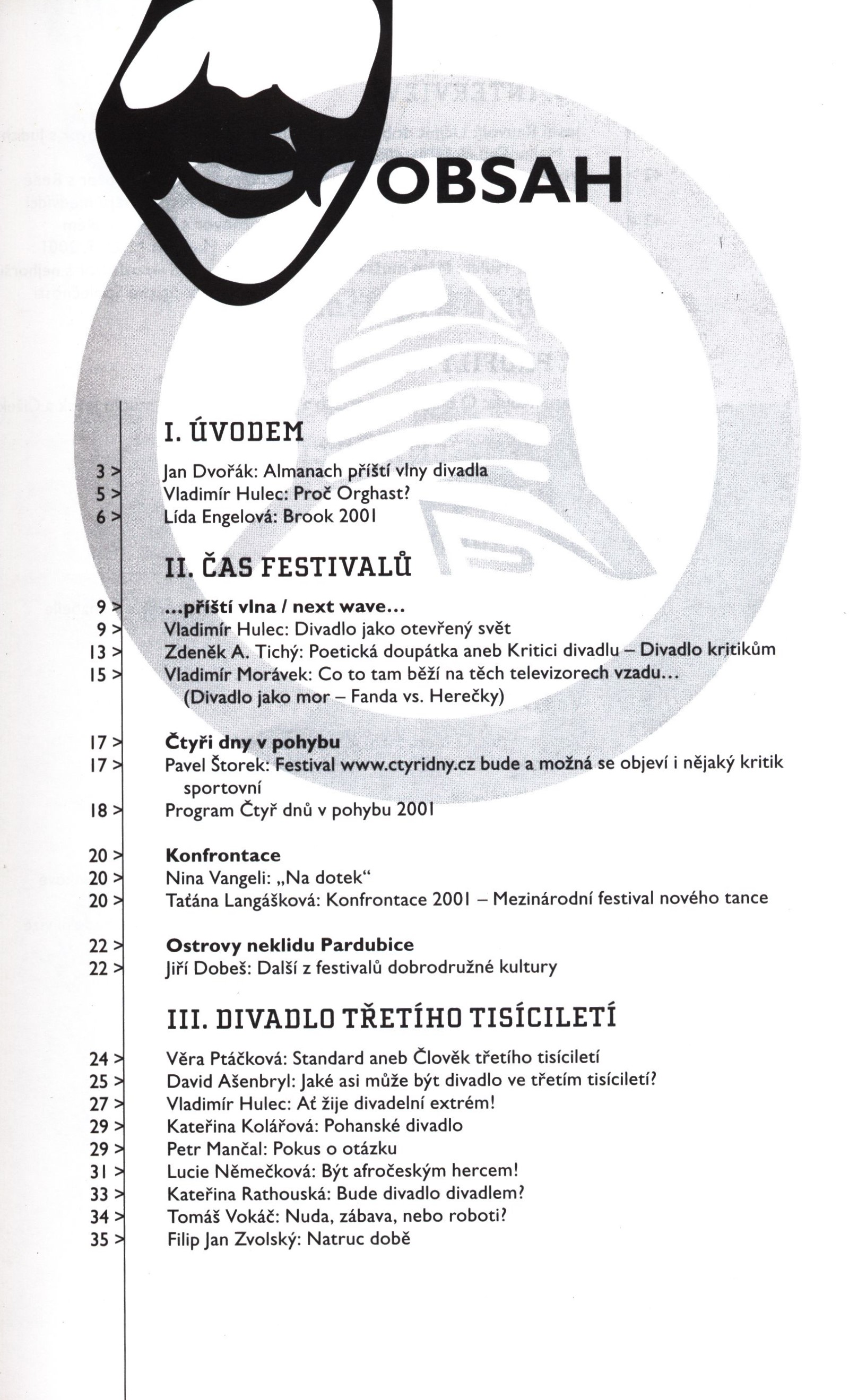 Názvové údaje Orghast 2002 : almanach příští vlny divadla, Revue Exotického Divadla / Editor Jan Dvořák ; Redakce Jan Dvořák ; Vladimír Hulec ; Kateřina Kolářová ; administrativní spolupráce Eva Svobodová ; obálka a grafická úprava Filip Blažek Osobní jméno Dvořák, Jan, 1951- (Editor) (Redaktor, výkonný redaktor) Další autoři Hulec, Vladimír, 1958- (Redaktor, výkonný redaktor) Kočičková, Kateřina, 1978- (Redaktor, výkonný redaktor) Klíčová, Eva, 1977- (Spolupracovník) Blažek, Filip, 1974- (Autor obálky) (Knižní grafik) Korp. Pražská scéna (nakladatelství) (Nakladatel, vydavatel) Serifa (tiskárna) (Tiskař) Nakladatel Praha : Pražská scéna, 2001 Výrobce Serifa Praha, Rozsah 95 stran : čb. fotografie, čb. ilustrace, čb. reprodukce ; 24 cm ISBN 80-86102-23-8 (brožováno) Země vyd. Česko Jazyk dok. čeština Poznámky Zdobená obálka. - Tiráž. - Obsah. - Úvod. - Resumé.