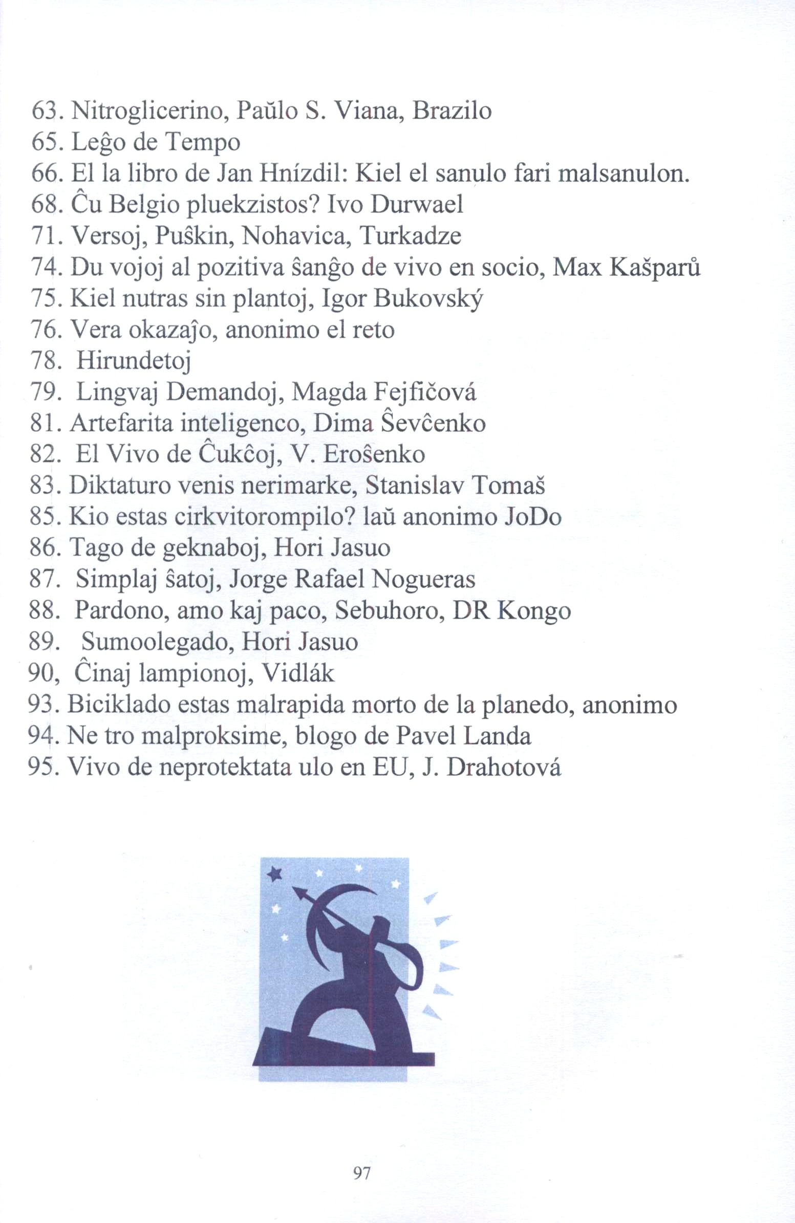 Názvové údaje Legaĵoj XII. / kolektis Jindřiška Drahotová Další autoři Drahotová, Jindřiška, 1938- (Sestavovatel, kompilátor) (Nakladatel, vydavatel) Korp. Tiskárna Čistá (Tiskař) Nakladatel [Mladá Boleslav] : [Jindřiška Drahotová], 2023 Výrobce [Čistá] : Tiskárna Čistá Rozsah 97 stran : ilustrace (převážně barevné), portréty ISBN (Brožováno) Země vyd. Česko Jazyk dok. esperanto Poznámky Bílozelená obálka. - Titulní list zdobený barevnou ilustrací. - Převážně barevné ilustrace, fotografie a portréty. - Obsah.