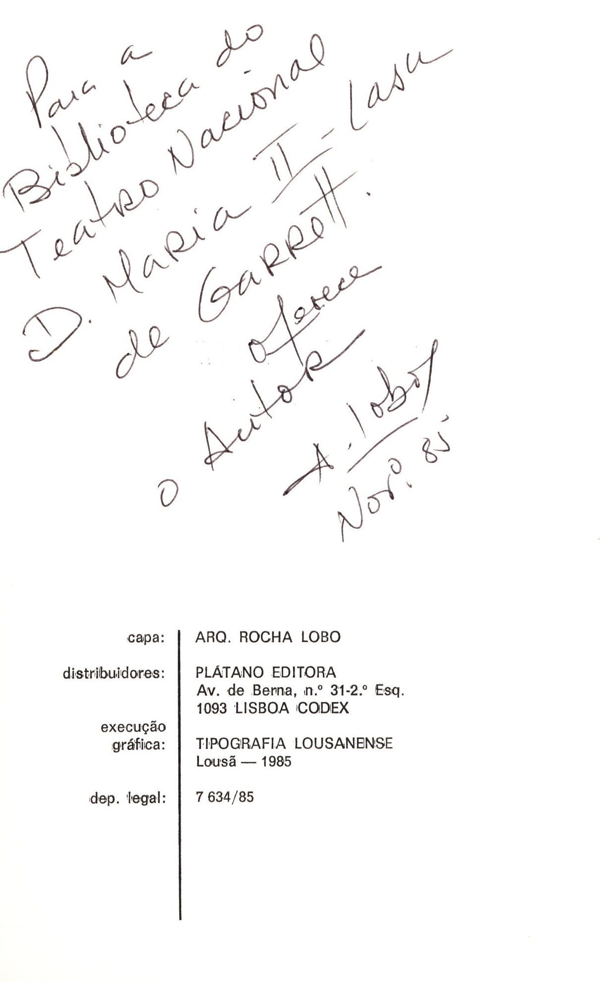 Druh dok. monografie Klíčová slova portugalská literatura * portugalsky psaná literatura * drama * divadelní hra * scénář MDT 821.134.3 * 821=134.3 * 82-2 Uživatelské pole PNP Sign. Listopad 549: rukopisná poznámka v knize. Signatura Přír.číslo Lokace Info Listopad 0549 1486/2025 Sbírka