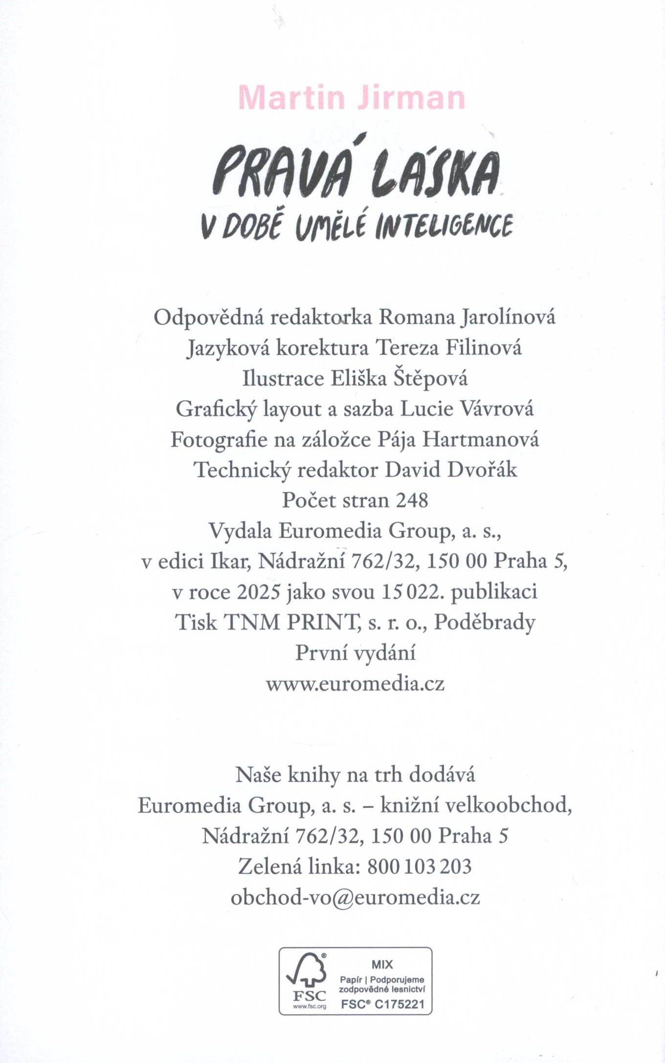 1. Názvové údajePravá láska v době umělé inteligence / Martin Jirman ; ilustrace Eliška Štěpová ; grafický layout a sazba Lucie Vávrová
