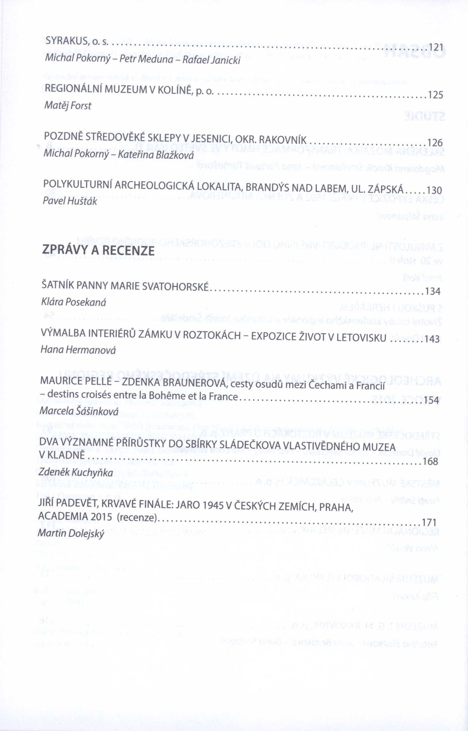 Poznámky Zdob. obálka. - Čb. fotografie, portréty, faksimile a plánky. - Obsahuje bibliografické odkazy a bibliografii. - Německá resumé. - Výběrová regionální bibliografie za rok 2015 na str. 173-177. - 200 výtisků.