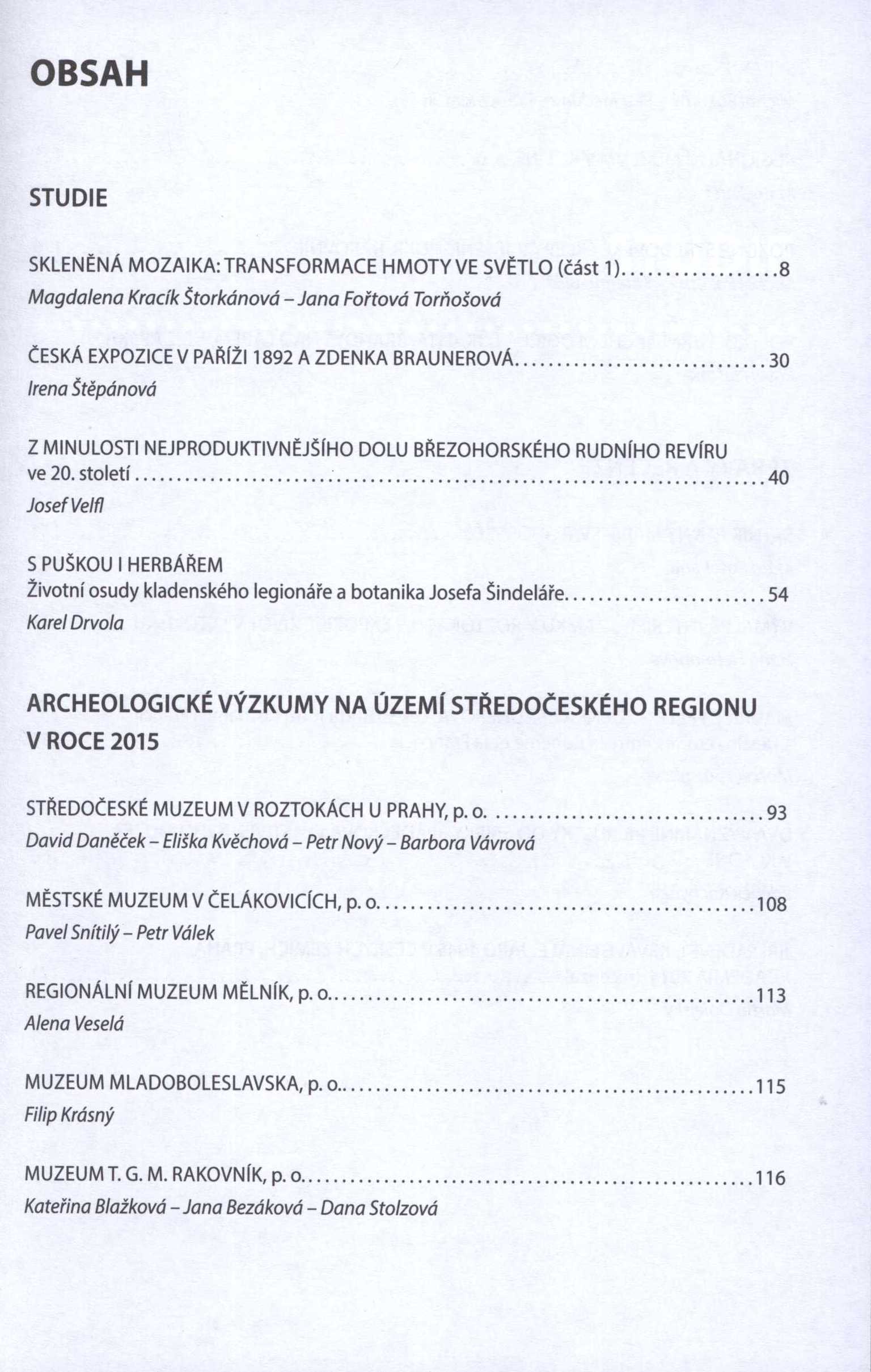 Klíčová slova střední Čechy * historie kraje * archeologický výzkum * osobnosti kraje * vlastivěda kraje * r. 2016 * regionální sborník