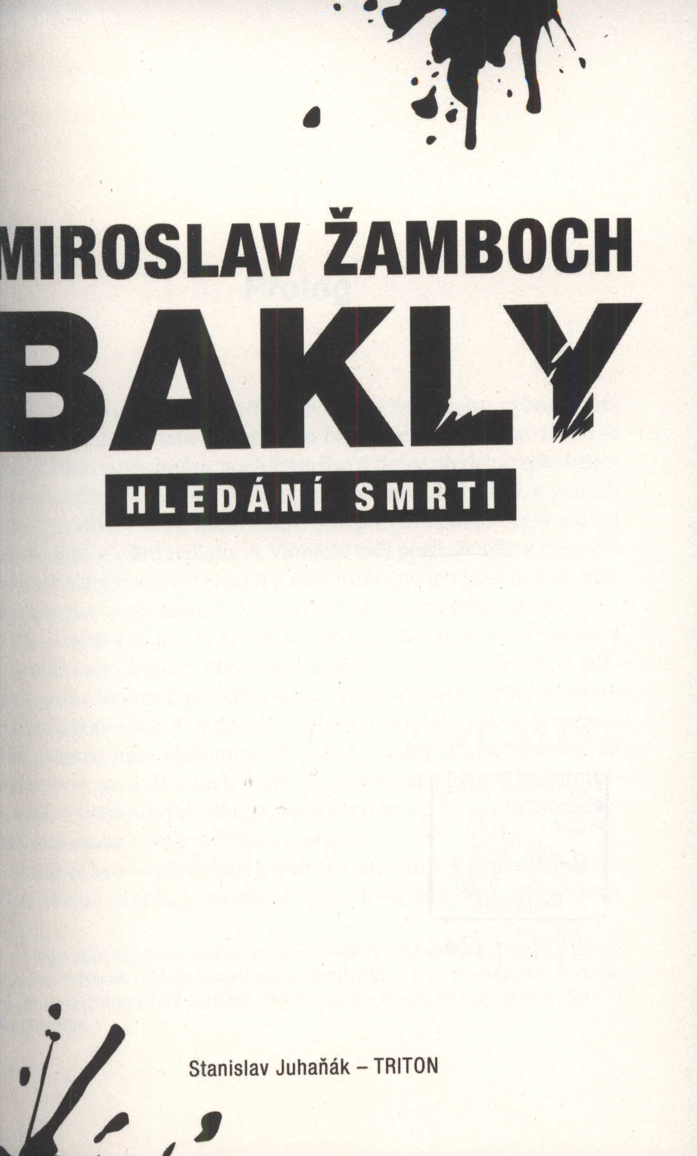 1. Názvové údajeBakly - hledání smrti / Miroslav Žamboch ; autorský medailon Martin Fajkus ; ilustrace na obálce Petr Vyoral ; grafická úprava obálky Renata Brtnická
