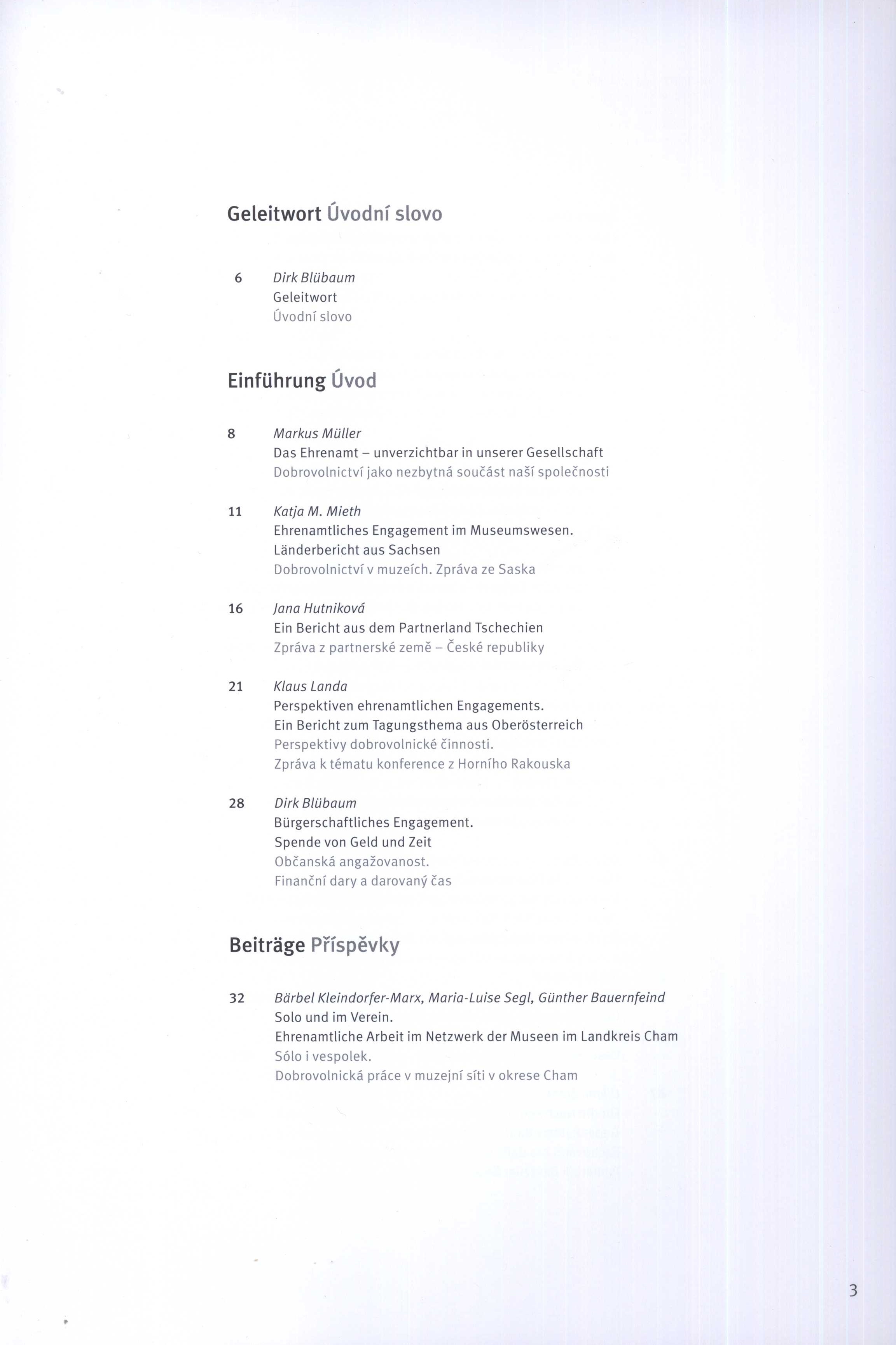 Názvové údaje Museum Bulletin Muzeum. 29, Einsatz im Museum. Perspektiven ehrenamtlichen Engagements: 29. internationale Tagung bayerischer, böhmischer, oberösterreichischer und sächsischer Museumsfachleute 13. bis 15. September 2020, Cham = Angažovanost v muzeu. Perspektivy dobrovolnické činnosti: 29. konference bavorských, českých, hornorakouských a saských odborných pracovníků muzeí 13. až 15. září 2020, Cham Übersetzungen Gudrun Heißig (München), Martina Stocker (Ergoldsbach) Záhlaví-akce Einsatz im Museum : Perspektiven ehrenamtlichen Engagements (konference) (2020 : Cham, Německo) (Autor) Další autoři Stocker, Martina, 1978- (Překladatel) Heissig, Gudrun (Překladatel) Korp. Asociace muzeí a galerií České republiky (Praha) (Organizátor akce) Landesstelle für die nichtstaatlichen Museen in Bayern (Organizátor akce) Verbund Oberösterreichischer Museen (Organizátor akce) (Nakladatel, vydavatel) Roč., číslo 29, 2021 Další var.názvy Einsatz im Museum. Perspektiven ehrenamtlichen Engagements Angažovanost v muzeu. Perspektivy dobrovolnické činnosti Nakladatel München : Landesstelle für die nichtstaatlichen Museen in Bayern, 2021 Rozsah 135 stran : fotografie (barevné), portréty ; 30 cm ISBN 978-3-9818259-5-4 (brožováno) Země vyd. Česko * Německo Jazyk dok. němčina * čeština Poznámky Barevné fotografie a portréty. - Souběžný český text. - Sborník příspěvků z 29. konference bavorských, českých, hornorakouských a saských odborných pracovníků muzeí 13. až 15. září 2020, Cham