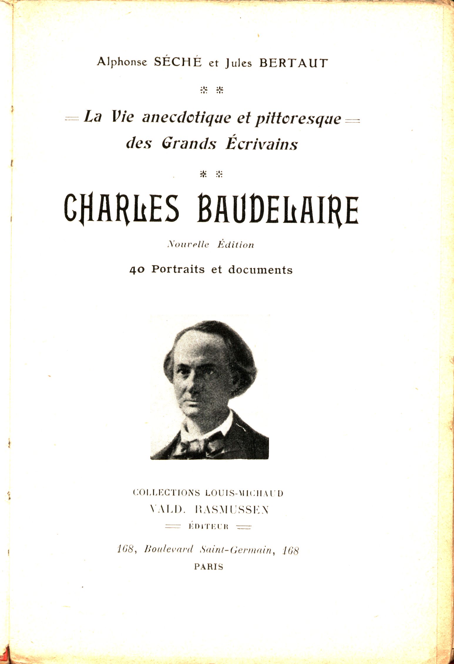 Vie anecdotique et pittoresque des Grands Écrivains (Vald. Rasmussen)Země vyd. Francie Jazyk dok. francouzština Poznámky Barevná zdobená obálka. - Titulní list s fotografií C. Baudelaira. - Ilustrace. - Tištěné poznámky pod čarou.