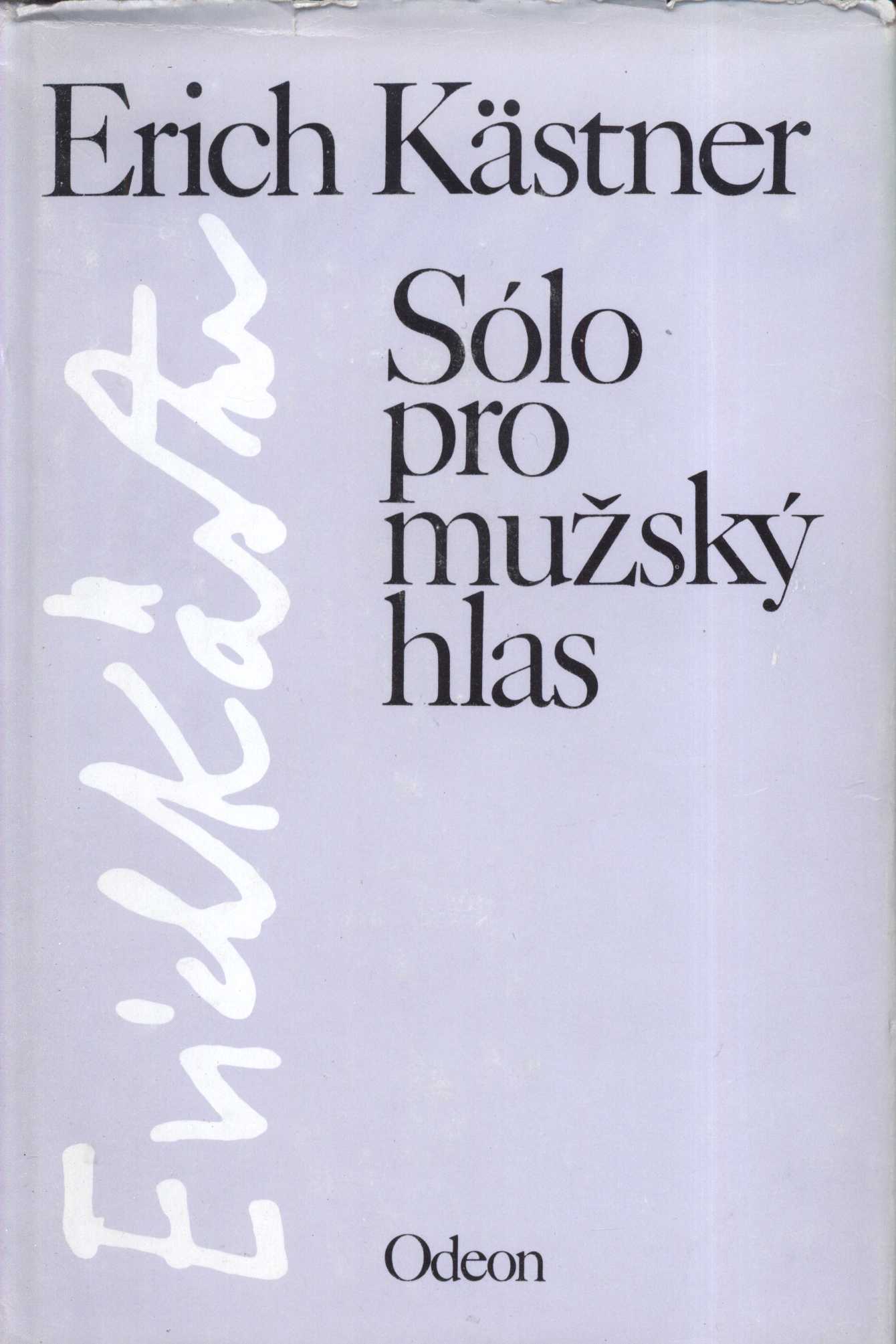 Názvové údaje Sólo pro mužský hlas / Erich Kästner ; [z německých originálů ... vybral a přeložil Jindřich Flusser ; doslov napsal Jaroslav Střítecký ; typografie Michal Houba] Osobní jméno Kästner, Erich, 1899-1974 (Autor) Další autoři Flusser, Jindřich, 1917-1994 (Překladatel) (Sestavovatel, kompilátor) Střítecký, Jaroslav, 1941- (Autor doslovu, tiráže atd.) Houba, Michal, 1958- (Typograf) Korp. Odeon (nakladatelství) (Nakladatel, vydavatel) Východočeské tiskárny (Havlíčkův Brod) (Tiskař) Údaje o vydání Vyd. tohoto výboru a překladu 1. Nakladatel Praha : Odeon, 1988 Výrobce Východočeské tiskárny) Rozsah 120 s. ISBN (váz.) Země vyd. Česko Jazyk dok. čeština Jazyk orig. němčina Poznámky Obálka. - Na záložce přebalu poznámka o knize. - Ilustrovaný titulní list. - Doslov.