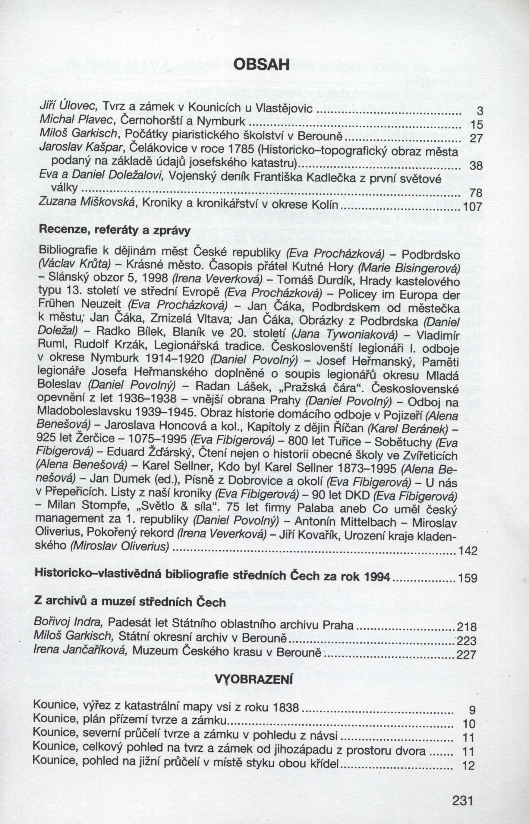 Názvové údaje Středočeský sborník historický Další autoři Státní oblastní archiv v Praze (Nakladatel, vydavatel) Roč., číslo Svazek 24, 1998 Údaje o vydání 1. vydání Nakladatel Praha : Státní oblastní archiv, 1998 Rozsah 232 stran : ilustrace, tabulky, mapy ISBN (Brožováno) Země vyd. Česko Jazyk dok. čeština Poznámky Zdob. obálka. - Čb. fotografie a faksimile dokumentů. - Tabulky. - Mapky. - Poznámky. - U jednotlivých příspěvků německá resumé. - Histor.-vlastivědná bibliografie středních Čech za r. 1994. - Autorský rejstřík. - Seznam vyobrazení.