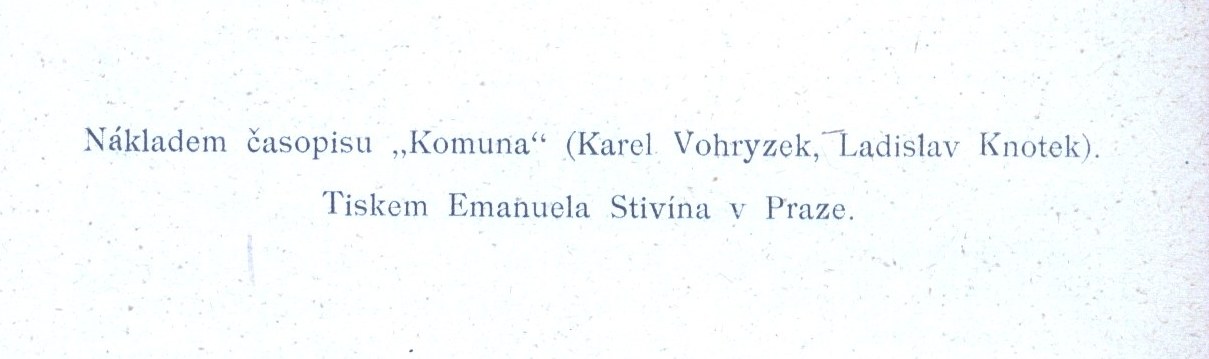 Knihovna anarchistických socialistů, (časopis "Komuna")Země vyd. -cs Jazyk dok. čeština Jazyk orig. ruština Poznámky Typografická obálka. - Na zadní straně obálky obsahuje nakladatelskou inzerci.
