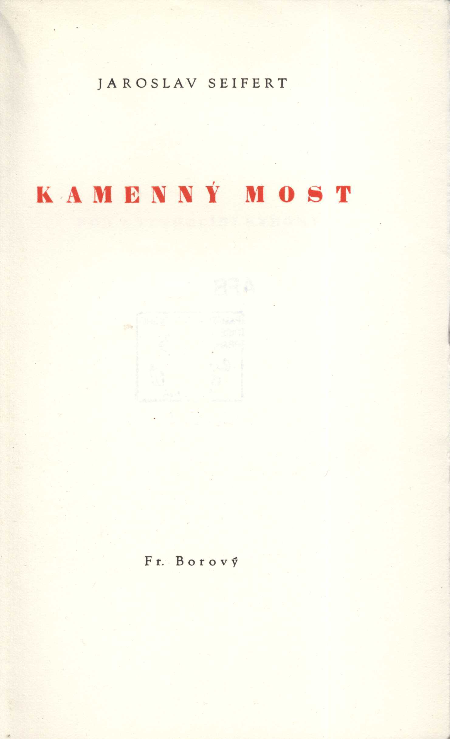 Názvové údaje Kamenný most / Jaroslav Seifert ; obálka, grafická úprava a vazba Zdeňka Sklenáře Osobní jméno Seifert, Jaroslav, 1901-1986 (Autor) Další autoři Sklenář, Zdeněk, 1910-1986 (Autor obálky) (Knižní grafik) (Výtvarník vazby) Korp. Fr. Borový (firma) (Nakladatel, vydavatel) Akciová moravská knihtiskárna Polygrafie (Tiskař) Údaje o vydání 1. vydání Nakladatel V Praze : Fr. Borový, 1947 Výrobce V Brně : Akciová moravská knihtiskárna Polygrafie Rozsah 162 stran ; 8° ISBN (Brožováno) Edice České básně ; svazek 73