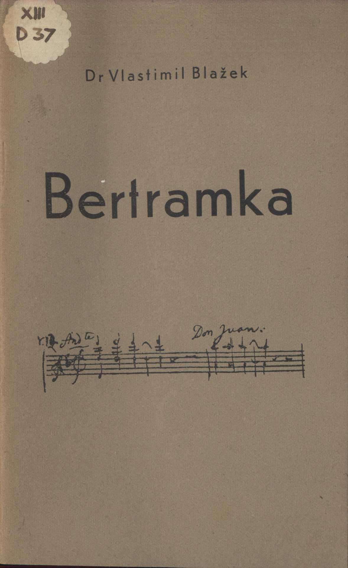 Názvové údaje Bertramka / Vlastimil Blažek Osobní jméno Blažek, Vlastimil, 1878-1950 (Autor) (Autor doslovu, tiráže atd.) (Nakladatel, vydavatel) Další autoři V. Helebrant (Praha) (Tiskař) Nakladatel V Praze : V. Blažek, 1934 Výrobce (V. Helebrant) Rozsah 39 s. : il. ISBN brož. Země vyd. Česko Jazyk dok. čeština Poznámky Zdobená obálka. - Frontispis. - Poznámky pod čarou. - Bibliografické údaje. - Doslov autora. - Černobílé ilustrace a faksimile. - Antologie básní vztahujících se k Bertramce. - Poznámky k vyobrazením.