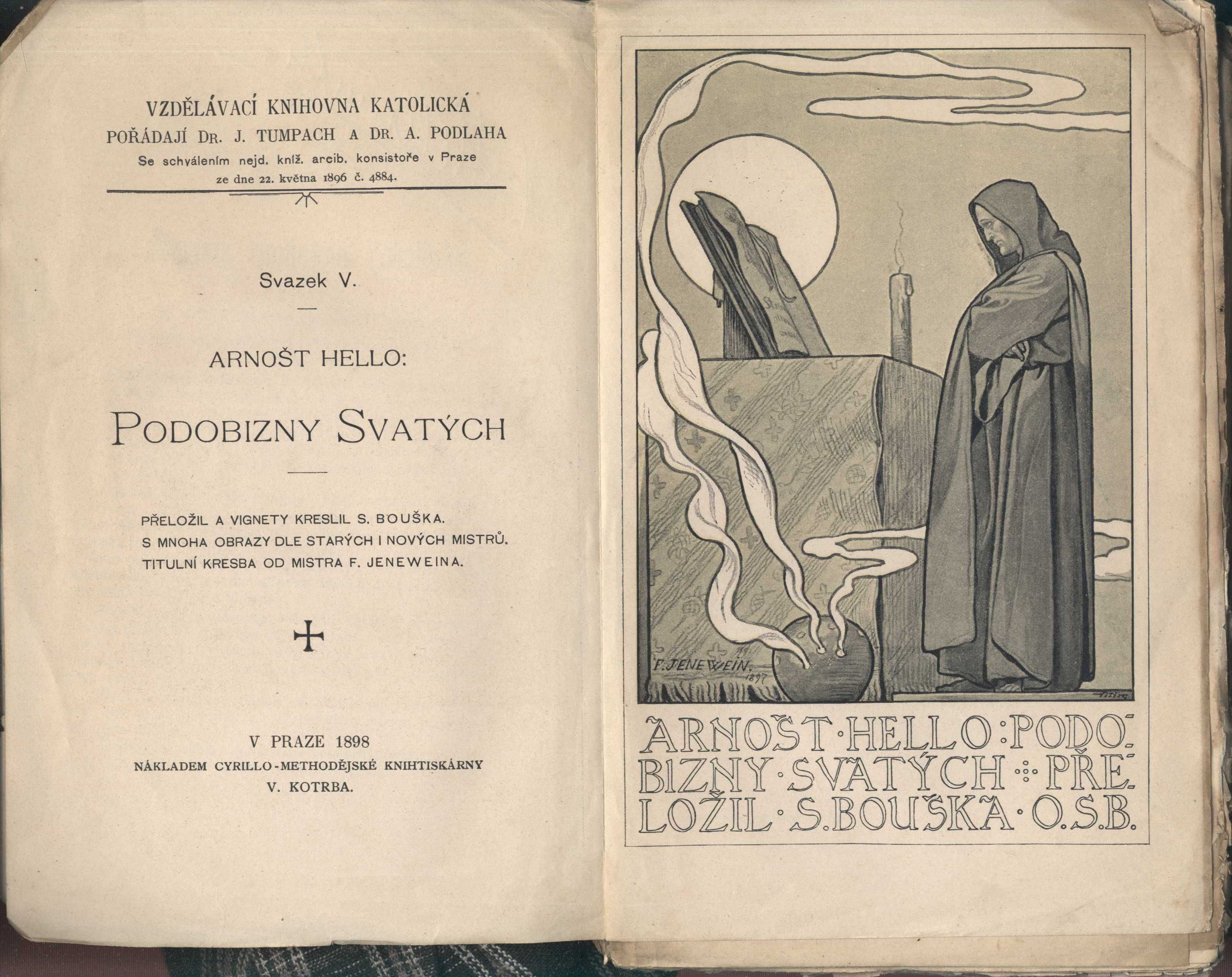 Vzdělávací knihovna katolická, (Cyrillo-Methodějská knihtiskárna a nakladatelství V. Kotrba)Země vyd. Česko Jazyk dok. čeština Jazyk orig. francouzština Poznámky Ilustrovaný titulní list od Felixe Jeneweina. - Vinětová výzdoba Sigismunda Boušky. - Černobílé ilustrace. - Sešitové vydání: každý sešit (1, 2, 3, 4, 5, 6-8) s přední stranou obálky zdobenou. - Poznámka autora. - Errata. - Nakladatelská reklama.