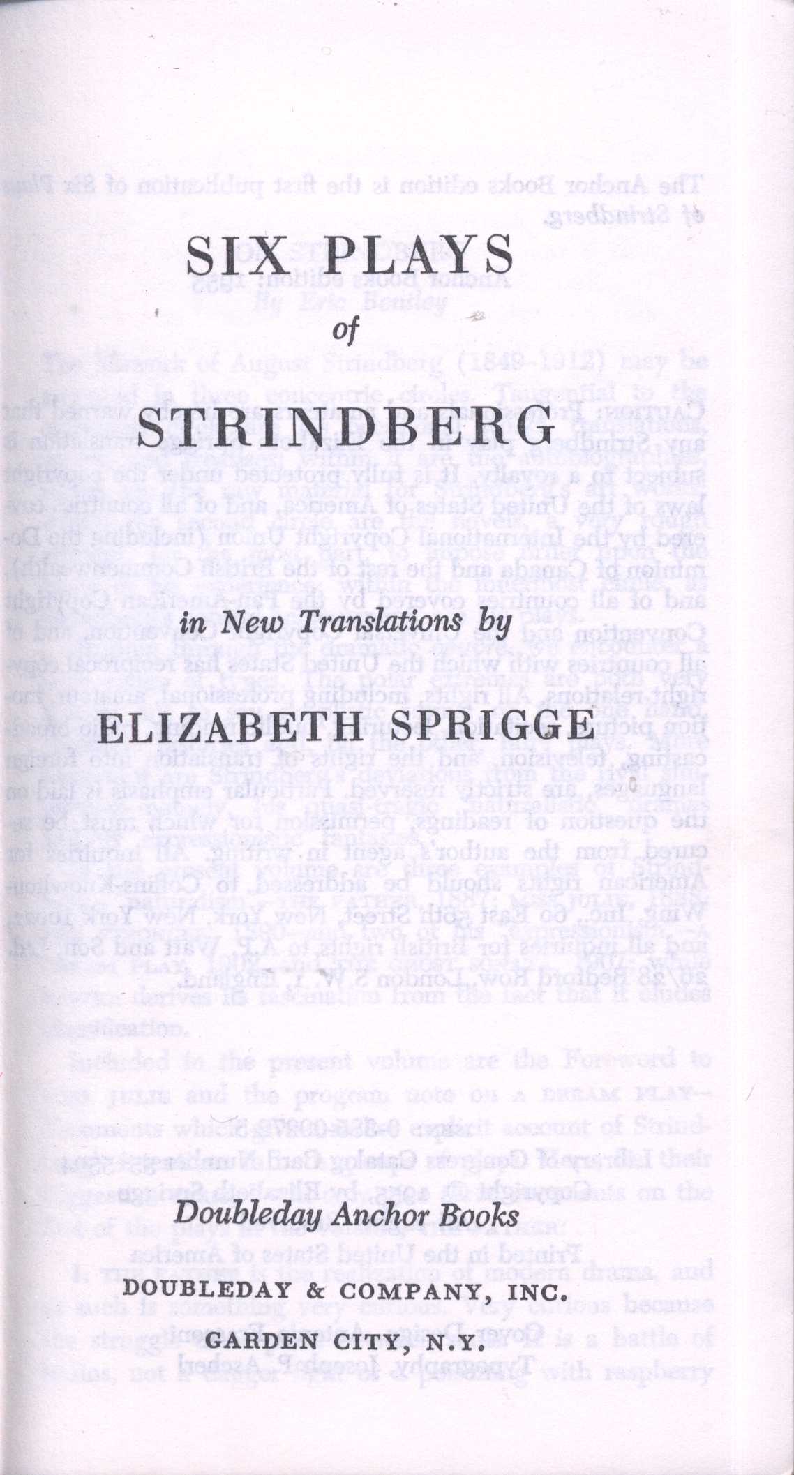Názvové údaje Six plays of Strindberg / in new translations by Elizabeth Sprigge Osobní jméno Strindberg, August, 1849-1912 (Autor) Další autoři Sprigge, Elizabeth, 1900-1974 (Překladatel) Nakladatel Garden City, NY : Doubleday & Company, 1955 Rozsah vi, 304 s. ISBN 0-385-09272-5 (brož.) Edice Anchor Books