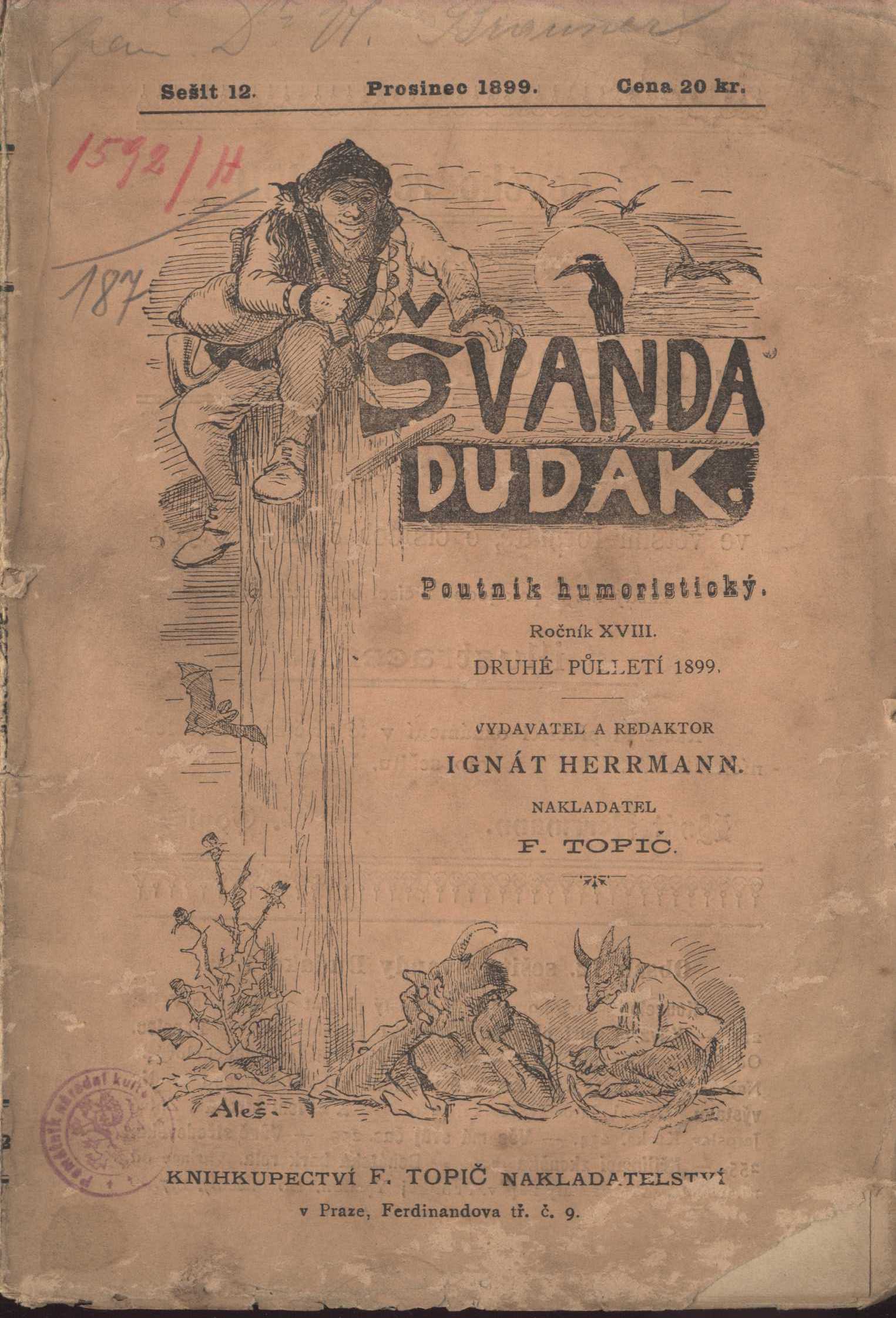 Názvové údaje Švanda dudák : poutník humoristický Další autoři Herrmann, Ignát, 1854-1935 (Redaktor, výkonný redaktor) (Nakladatel, vydavatel) Brauner, Vladimír, 1853-1924 (Dřívější majitel) Korp. F. Topič (nakladatelství) (Nakladatel, vydavatel) Alois Wiesner, knihtiskař České akademie císaře Františka Josefa pro vědy, slovesnost a umění (Praha) (Tiskař) Roč., číslo Ročník 18, 2. půlletí, číslo 7-12, 1899 Nakladatel Praha : F. Topič, 1899 Výrobce Tiskl Alois Wiesner Rozsah 260 stran : ilustrace ; 19 cm Země vyd. Česko Jazyk dok. čeština Poznámky Čb. ilustrované záhlaví stejné u každého čísla. - Čb. ilustrace