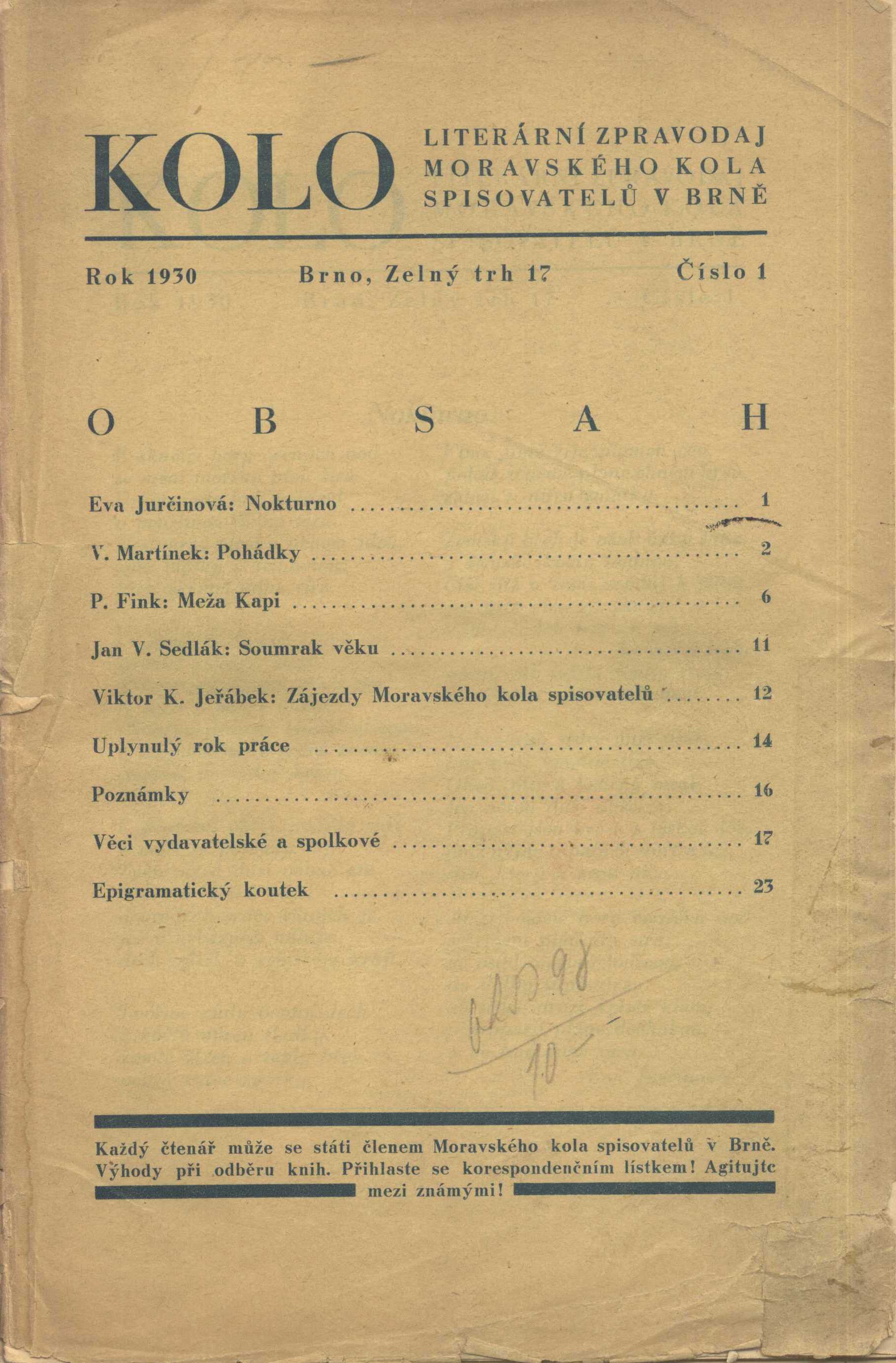 Názvové údaje Kolo : literární zpravodaj Moravského kola spisovatelů v Brně Další autoři Cipr, Josef, 1881-1956 (Šéfredaktor, odpovědný redaktor) Staněk, Josef, 1887-1947 (Šéfredaktor, odpovědný redaktor) Korp. Moravské kolo spisovatelů (1912-1949) (Nakladatel, vydavatel) Typia (Brno) (Tiskař) Roč., číslo Číslo 1-10, 1930 Nakladatel V Brně : nákladem Mor. Kola spisovatelů, 1930 Výrobce Typia Rozsah ilustrace, faksimile ; 24 cm Klíčová slova česká literatura * česká poezie * česká próza * Morava * moravští spisovatelé * r. 1930 * literární časopis * české časopisy Nadřízená jednotka Kolo Počet ex. 1, z toho volných 1 Druh dok. PERIODIKA - Svázaný ročník periodika Signatura Q 22 D1