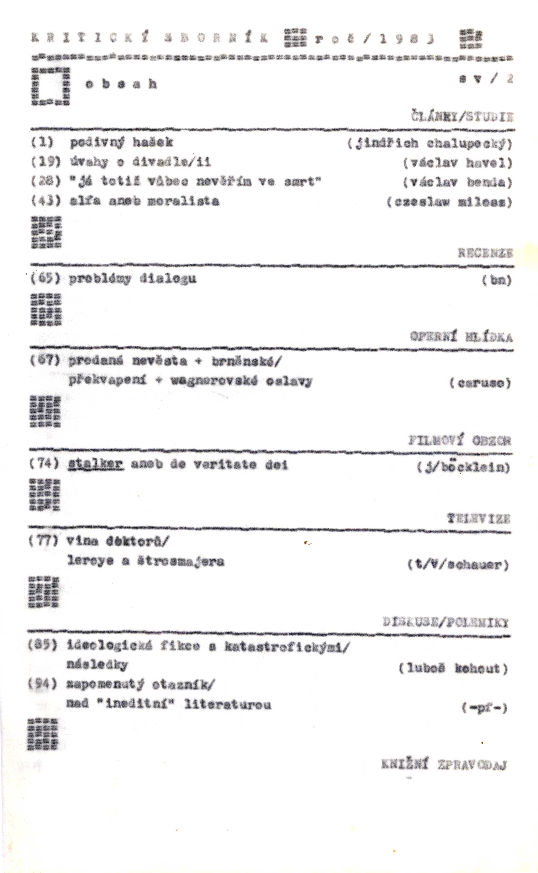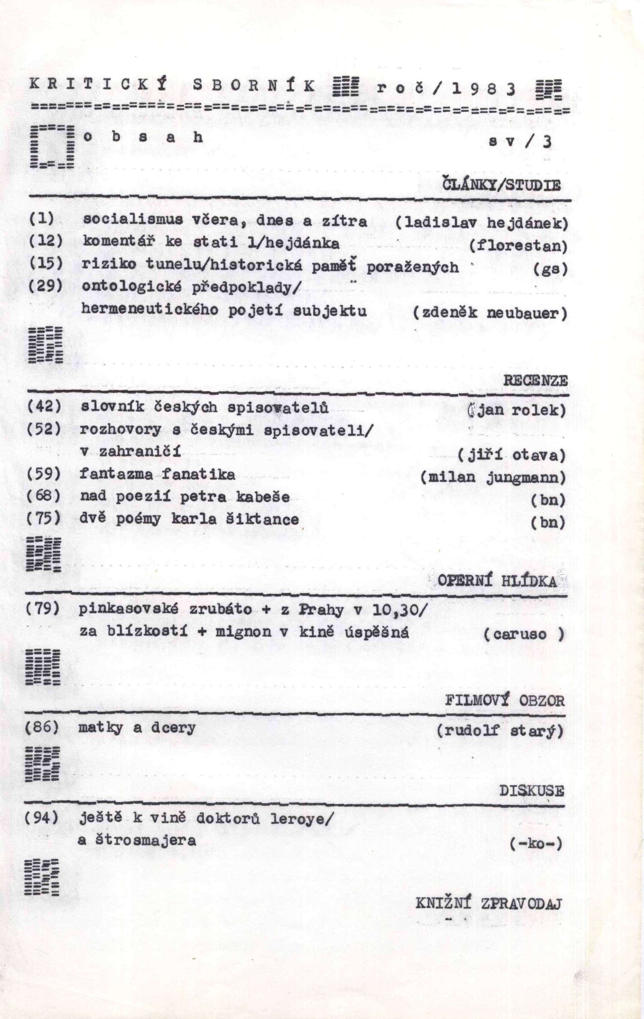 Poznámky Strojopis na bílém, popř. žlutém průklepovém papíru . - V roce 1983 navíc Ročenka Kritického sborníku 1983. - Samizdat