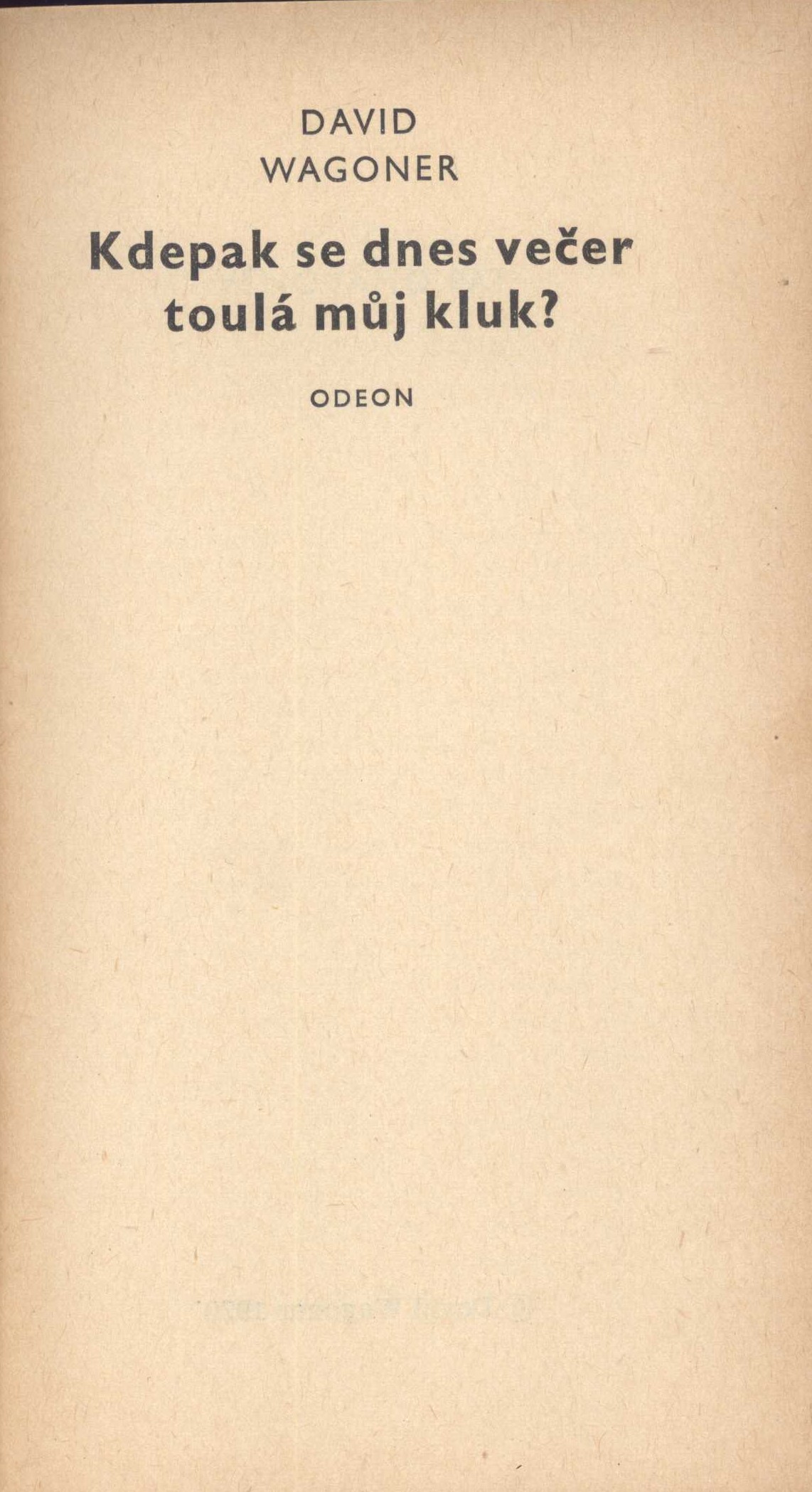 1. Názvové údajeKdepak se dnes večer toulá můj kluk? / David Wagoner