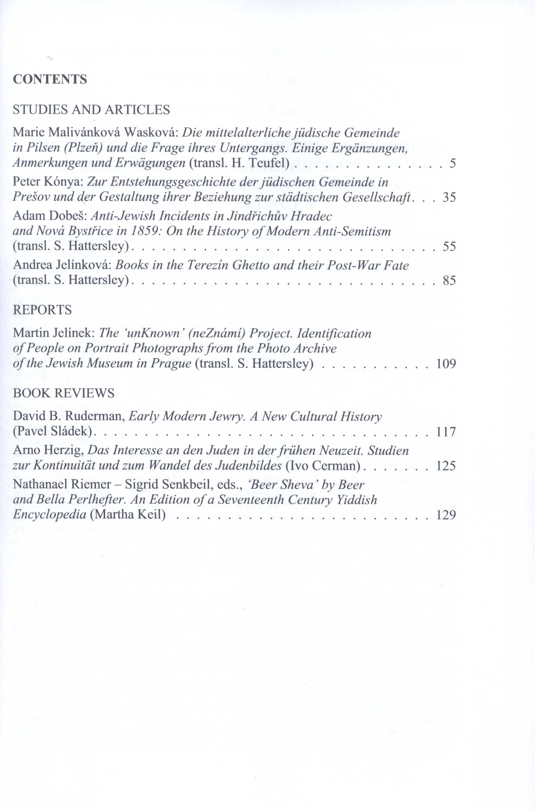 Názvové údaje Judaica Bohemiae Další autoři Cermanová, Iveta, 1976- (Editor) Putík, Alexandr, 1950- (Editor) Vašek, Vladimír, 1974- (Grafický technik) Hattersley, Stephen (Překladatel) Teufel, Helmut, 1944- (Překladatel) Korp. Židovské muzeum (Praha, Česko) (Nakladatel, vydavatel) Helvetica & Tempora (Tiskař) Roč., číslo 47/1, 2012 Nakladatel Praha : Židovské muzeum v Praze, 2012 Výrobce Helvetica Tempora spol. s.r.o. Rozsah 133 stran : fotografie, portréty, faksimile ; 24 cm ISBN (Brožováno) ISSN 0022-5738 Země vyd. Česko Jazyk dok. angličtina * němčina Poznámky Text anglicky a německy. - Čb. fotografie, portréty a faksimile.