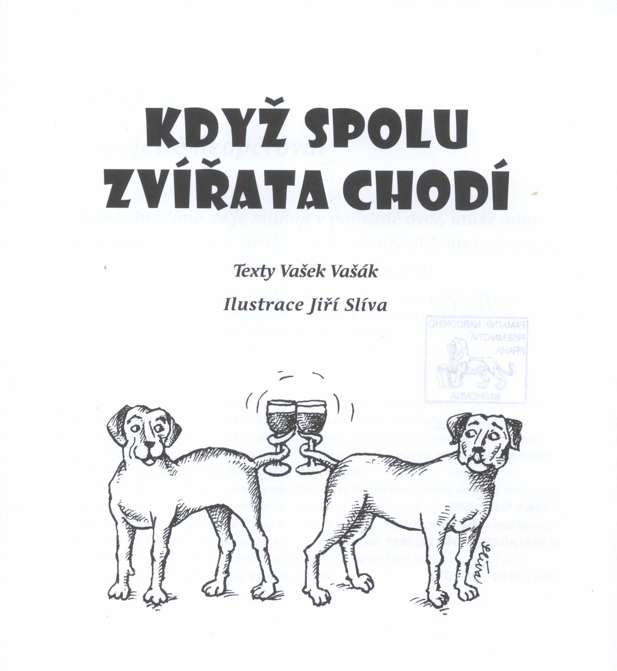 Názvové údaje Když spolu zvířata chodí / text Vašek Vašák ; ilustrace Jiří Slíva ; obálka Jiří Franc ; grafická úprava a sazba Tomáš Říha Osobní jméno Vašák, Vašek, 1949- (Autor) Další autoři Slíva, Jiří, 1947- (Ilustrátor) Franc, Jiří, 1968- (Autor obálky) Říha, Tomáš, 1983- (Knižní grafik) (Sazeč) Korp. XYZ (nakladatelství) (Nakladatel, vydavatel) TNM PRINT s. r. o. (tiskárna) (Tiskař) Údaje o vydání 1. vydání Nakladatel Praha : XYZ, 2019 Výrobce Chlumec nad Cidlinou : TNM Print s.r.o. Rozsah 214 stran : ilustrace ; 21 cm ISBN 978-80-7597-563-8 (vázáno) Země vyd. Česko Jazyk dok. čeština Poznámky Bílá vazba s barevnou ilustrací, dvoubarevný text; růžový hřbet s modrým textem a s nakladatelskou značkou. - Nakladatelská značka na vakátě. - Černobílá ilustrace na titulním listu. - Text, zajímavosti. - Černobílé celostránkocé ilustrace. - Obsah. - Nakladatelská značka v tiráži. - Anotace knihy, o autorovi a ilustrátorovi, nakladatelská značka na zadní strabě vazby.