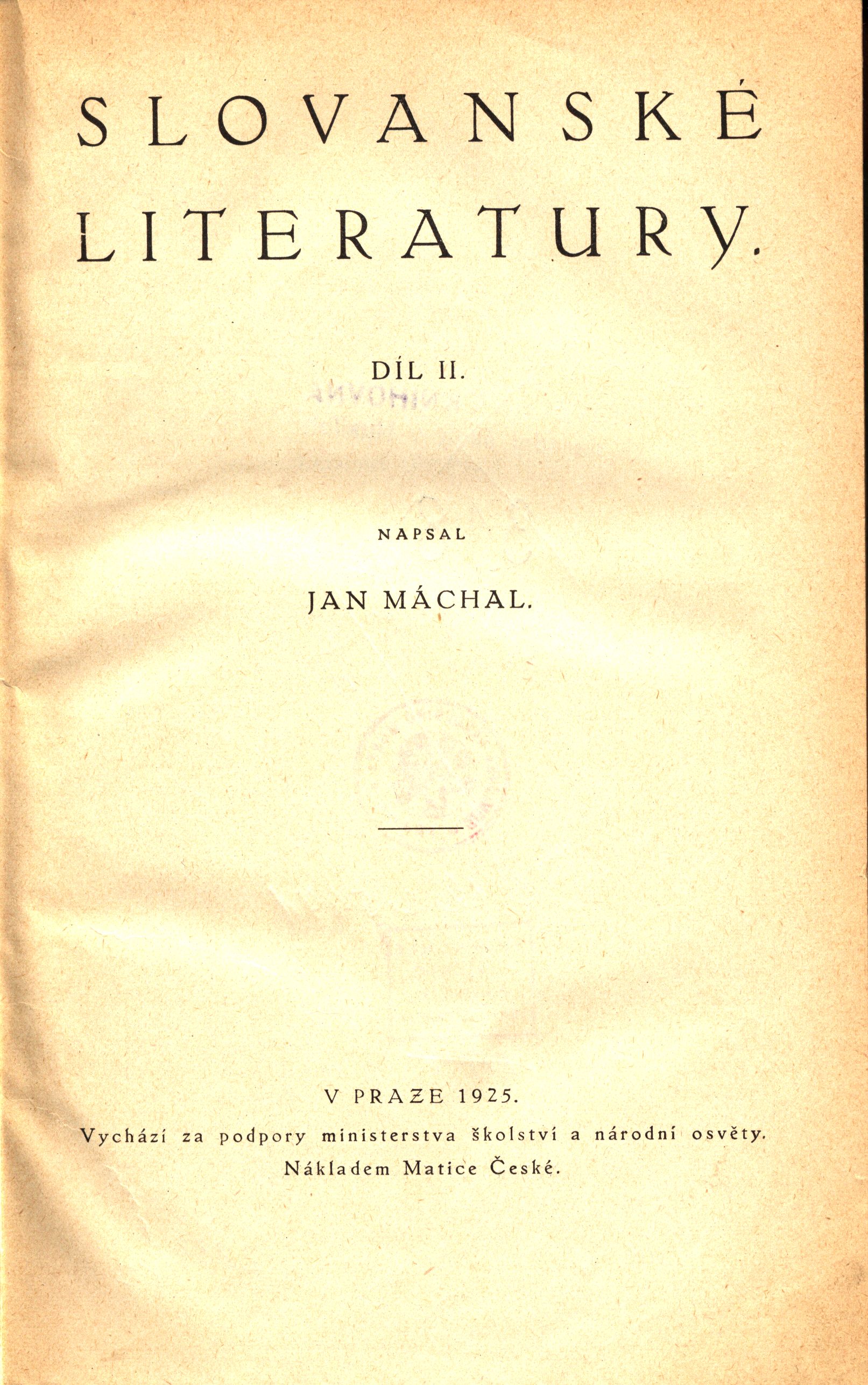 Názvové údaje Slovanské literatury. Díl II / napsal Jan Máchal Osobní jméno Máchal, Jan, 1864-1924 (Autor) (Autor úvodu atd.) Další autoři Matice česká (Nakladatel, vydavatel) Pražská akciová tiskárna (Tiskař) Nakladatel V Praze: nákladem Matice české, 1925 Distributor V komisi u Fr. Řivnáče Výrobce Tiskem Pražské akciové tiskárny Rozsah 605 stran ; 23 cm ISBN (Vázáno) Edice Novočeská bibliotéka ; číslo XXXVI