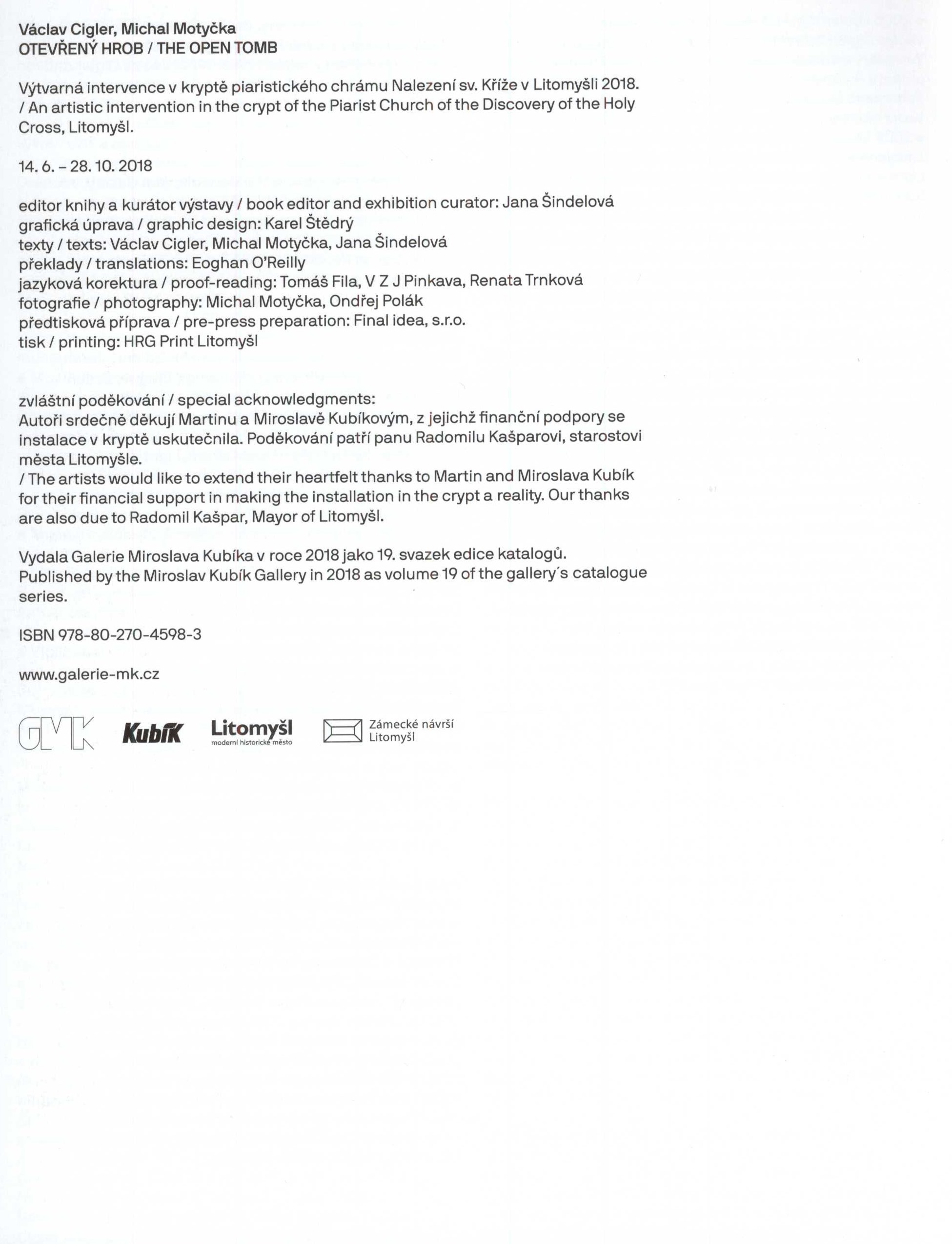 $a Otevřený hrob = $b The open tomb / $c Václav Cigler, Michal Motyčka ; texty: Václav Cigler, Michal Motyčka, Jana Šindelová ; překlady: Eoghan O'Reilly ; grafická úprava: Karel Štědrý ; fotografie: Michal Motyčka, Ondřej Polák 246 3-