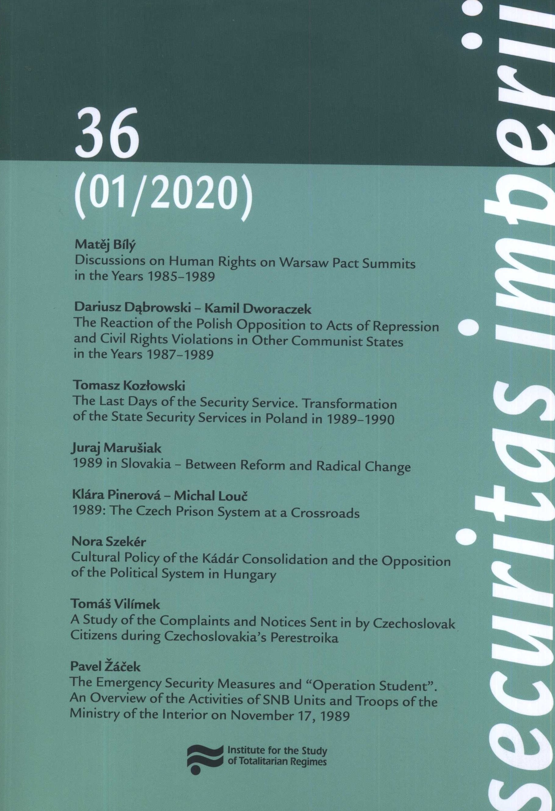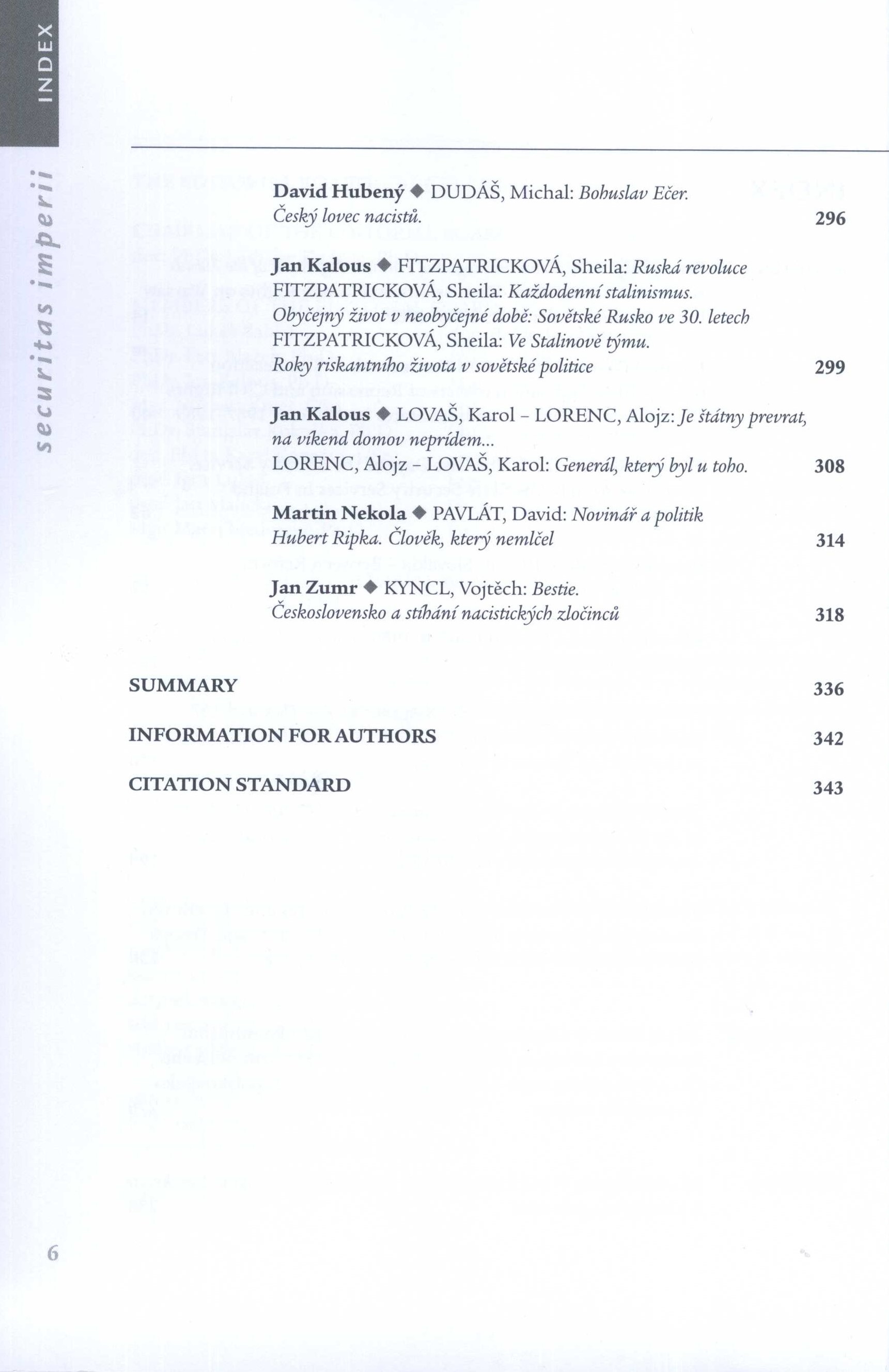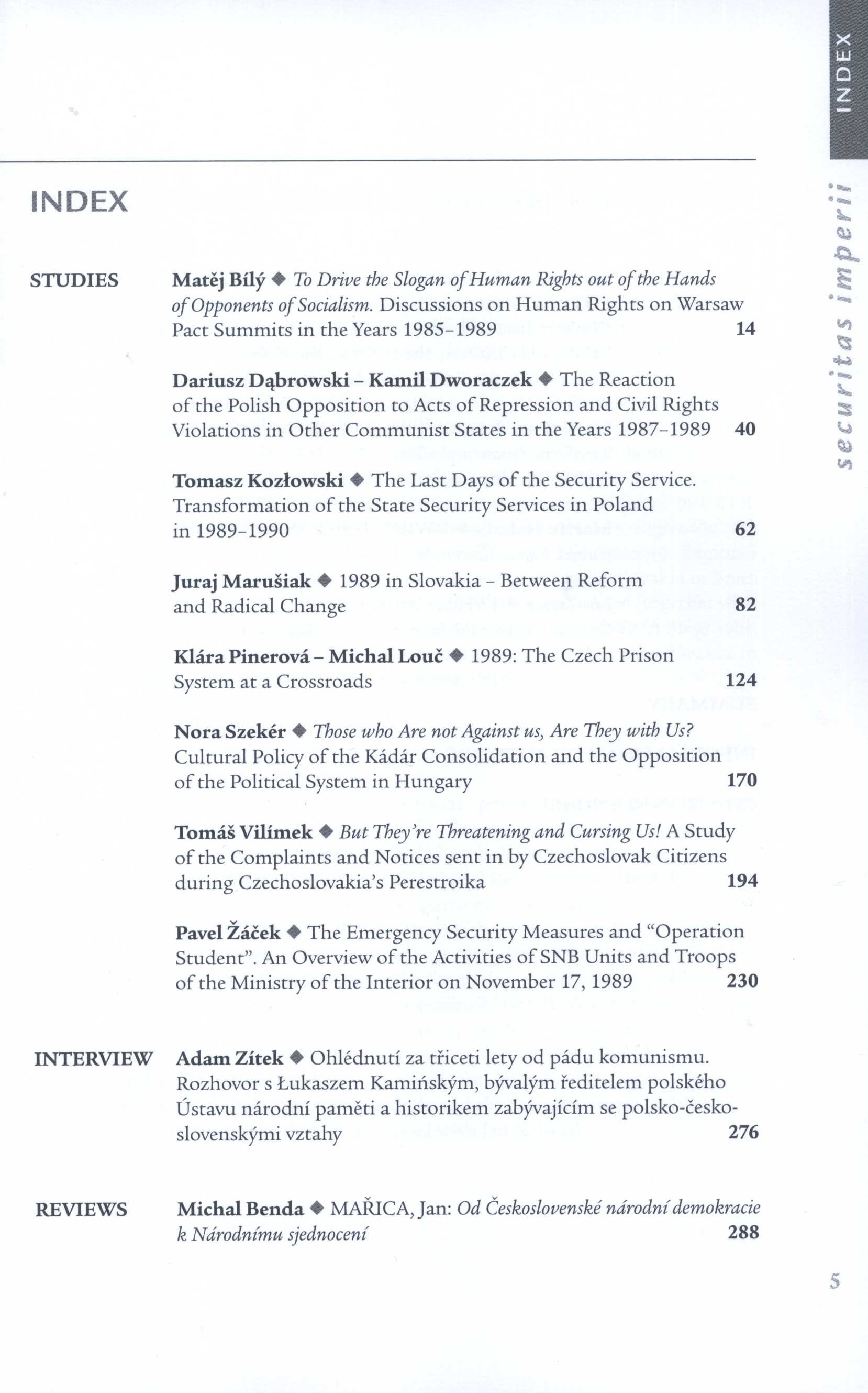 Poznámka o dalších původcích Vedoucí redaktor Patrik Virkner Grafická úprava Jaroslav Ježek Druh dok. PERIODIKA - Přijatá čísla Periodicita 2x ročně Poznámky o skryté bibliografii a rejstřících Obsahuje bibliografické odkazy. - Informace o autorech Nadřízená jednotka Securitas imperii Klíčová slova Československo * totalitní režimy * politický vývoj * protikomunistický odboj * listopad 1989 * listopadová revoluce * 17. listopad 1989 * studie * recenze * sborník MDT (437) * 82.07 Signatura Přír.číslo Lokace Info LITc 0305 0954/2021 Fond