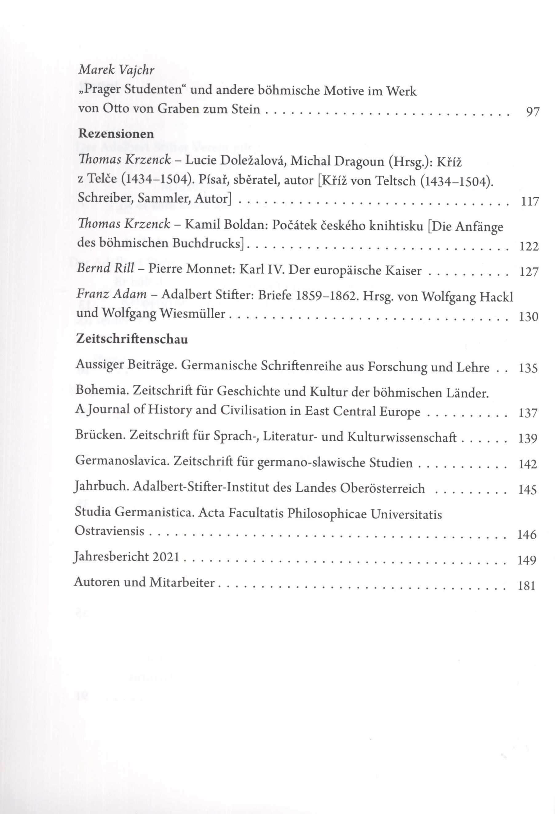 Názvové údaje Stifter Jahrbuch. Neue Folge Další autoři Mayer, Franziska (Šéfredaktor, odpovědný redaktor) Korp. Adalbert Stifter Verein (Mnichov, Německo) (Nakladatel, vydavatel) Roč., číslo 35, 2021 Nakladatel München : Adalbert Stifter Verein, [2022] Copyright ©2022 Rozsah 182 stran : fotografie, portréty ; 23 cm ISBN 978-3-940098-21-4 (brožováno) Země vyd. Německo Jazyk dok. němčina Poznámky Černobílé fotografie a portréty. - Seznam autorů.
