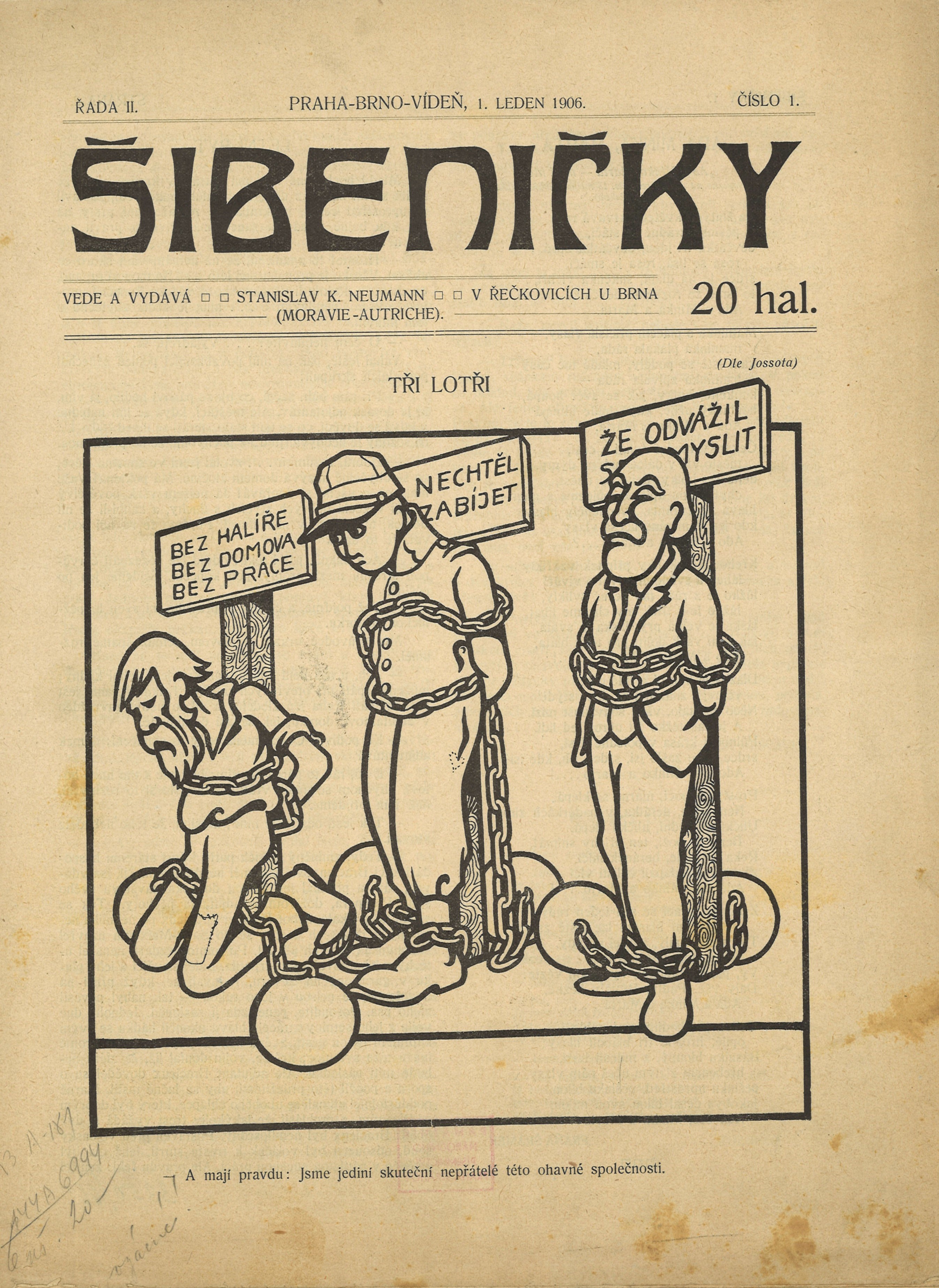 Klíčová slova politická satira * básně * próza * r. 1906 * české časopisy