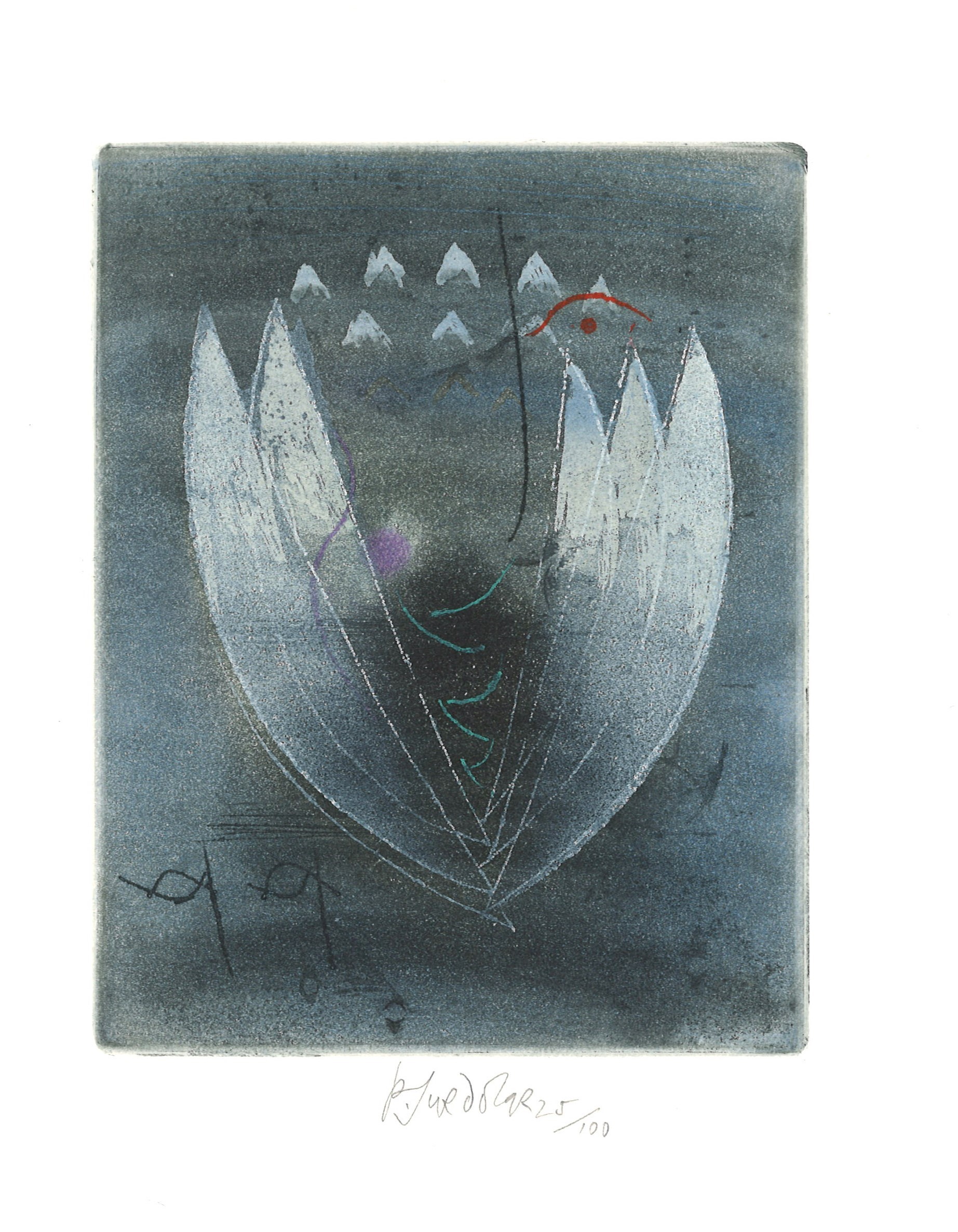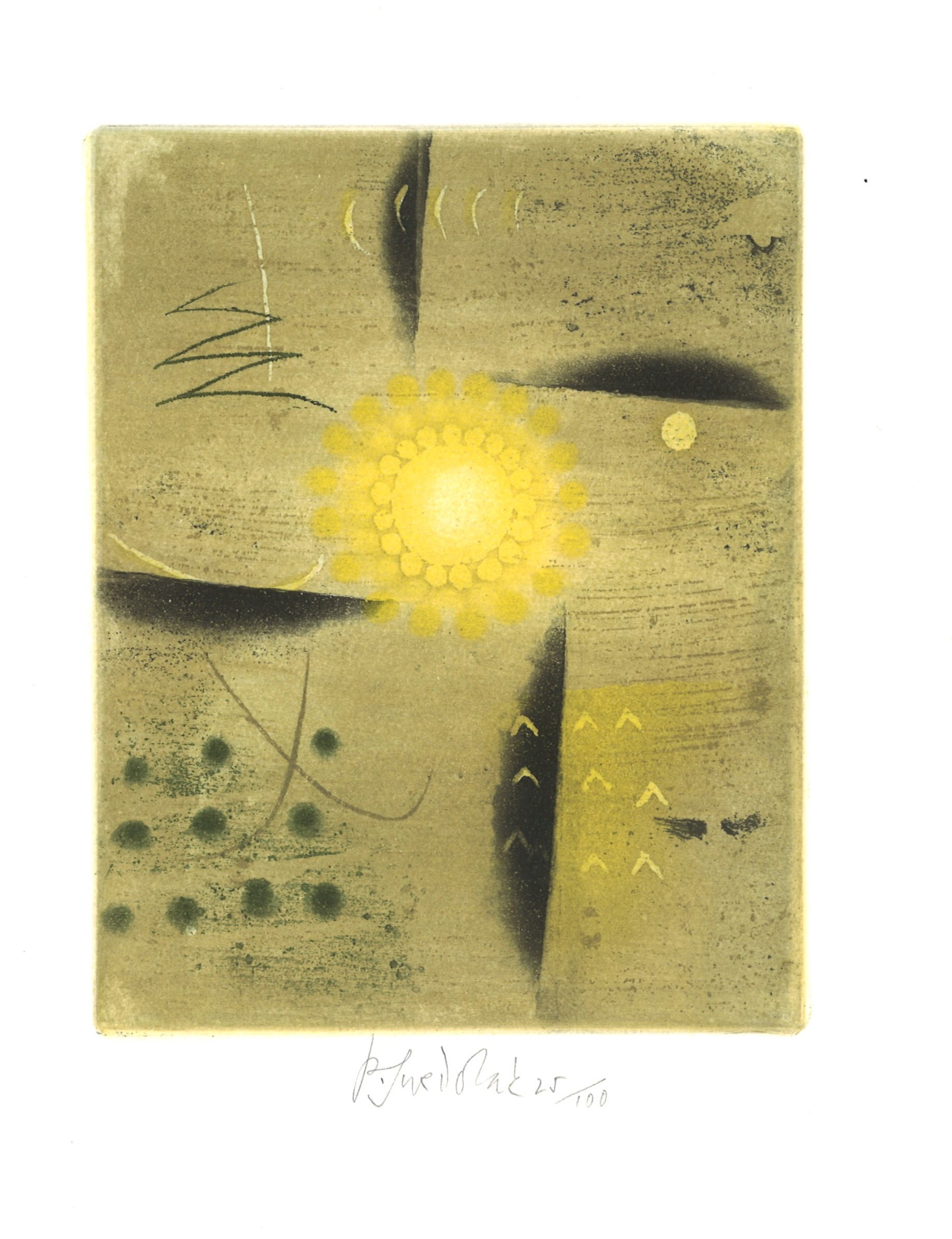 Bibliofilská edice (Aulos)Země vyd. Česko Jazyk dok. čeština Jazyk orig. němčina Poznámky Bibliofilie. - Barevná obálka s drobnou barevnou ilustrací signovanou P.S., zelený text (i na hřbetu). - Zelená papírová vazba s malým kulatým průřezem (pod ním šedý plech). - Světle žluté předsádky. - Na vakátě slepotisková nakladatelská značka. - Pět barevných celostránkových leptů s podpisem autora, číslovaných 25/100. - Text. - Přebal.