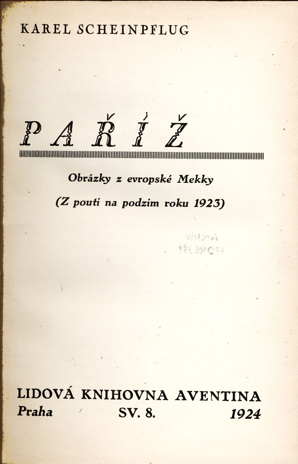 $a Paříž : $b obrázky z evropské Mekky : (z pouti na podzim roku 1923) / $c Karel Scheinpflug 246 11