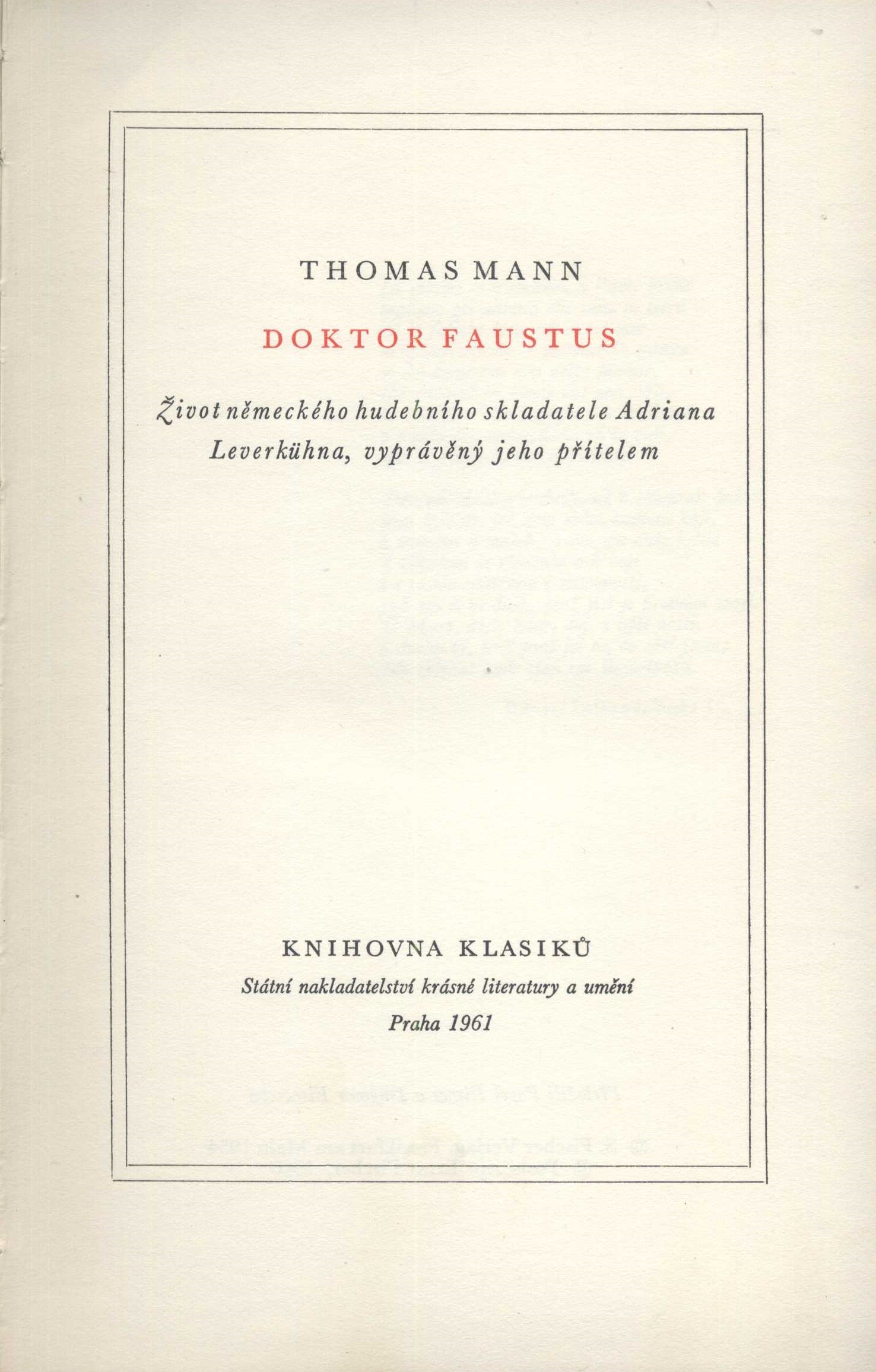 $a Doktor Faustus - Das Leben des deutschen Tonsetzers Adrian Leverkühn, erzählt von einem Freunde. $l Česky 245 10