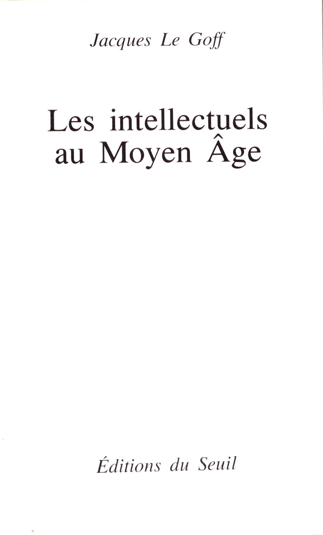 Názvové údaje Les intellectuels au Moyen Âge / Jacques Le Goff Osobní jméno Le Goff, Jacques, 1924-2014 (Autor) Další autoři Éditons du Seuil (nakladatelství) (Nakladatel, vydavatel) Imprimerie Tardy Quercy (tiskárna) (Tiskař) Nakladatel Paris : Éditions du Seuil, 1985 Výrobce Bourges : Imprimerie Tardy Quercy Rozsah ix, 224 stran : ilustrace ; 18 cm ISBN 2-02-008691-3 (brožováno) Edice Points. Histoire ; H78