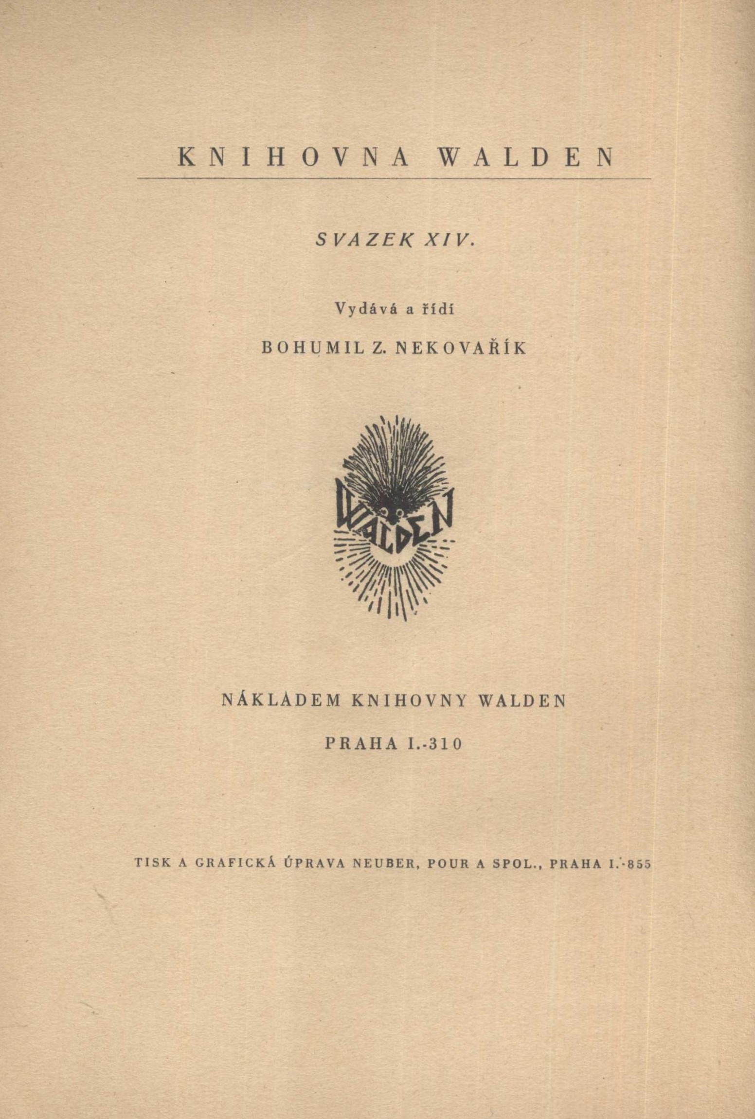 Názvové údaje Život pavouka / napsal J. Henry Fabre ; přeložili Bohumil Z. Nekovařík a Jan Obenberger ; úvodní studii napsal Maurice Maeterlinck Osobní jméno Fabre, Jean-Henri, 1823-1915 (Autor) Další autoři Nekovařík, Bohumil Zdeněk, 1898-1979 (Překladatel) (Nakladatel, vydavatel) Obenberger, Jan, 1892-1964 (Překladatel) Maeterlinck, Maurice, 1862-1949 (Autor úvodu atd.) Korp. Knihovna Walden (edice nakladatelství B.Z. Nekovařík) (Nakladatel, vydavatel) Neuber, Pour a spol. (tiskárna) (Tiskař) Nakladatel Praha : Bohumil Z. Nekovařík : nákladem Knihovny Walden, 1925 Výrobce Praha : Neuber, Pour a spol. Rozsah xiv, 210 stran, [9] listů obrazové přílohy : ilustrace, 1 portrét ; 20 cm ISBN (Brožováno) Edice Knihovna Walden ; svazek 14