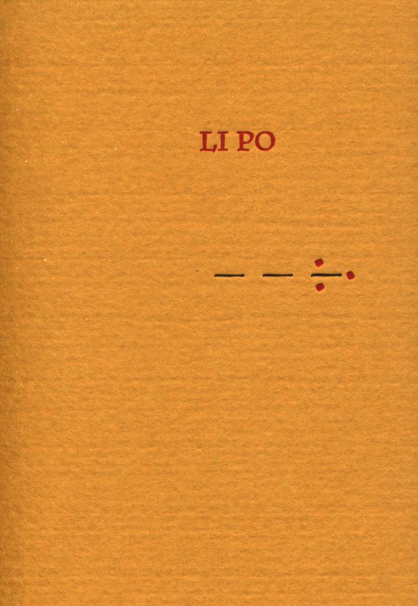 Čtyřverší / Li Po ; v překladu F. Hrubína. -- Rájec-Jestřebí : [Jan Juránek], 2005. -- 13 stran ; 11 cm. -- Soukromý tisk. - Pro radost sobě i přátelům vytiskl na ručním lisu písmem Manuscript 35 výtisků Jan Juránek. - Bez vazby, volné dvojlisty vložené v obálce s chlopní. - Na titulním listu drobná vinětka, stejný motiv na obálce a v textu. - Rozměr 10,7 x 7,8 cm. -- ISBN : (Bez vazby, volné dvojlisty v obálce).