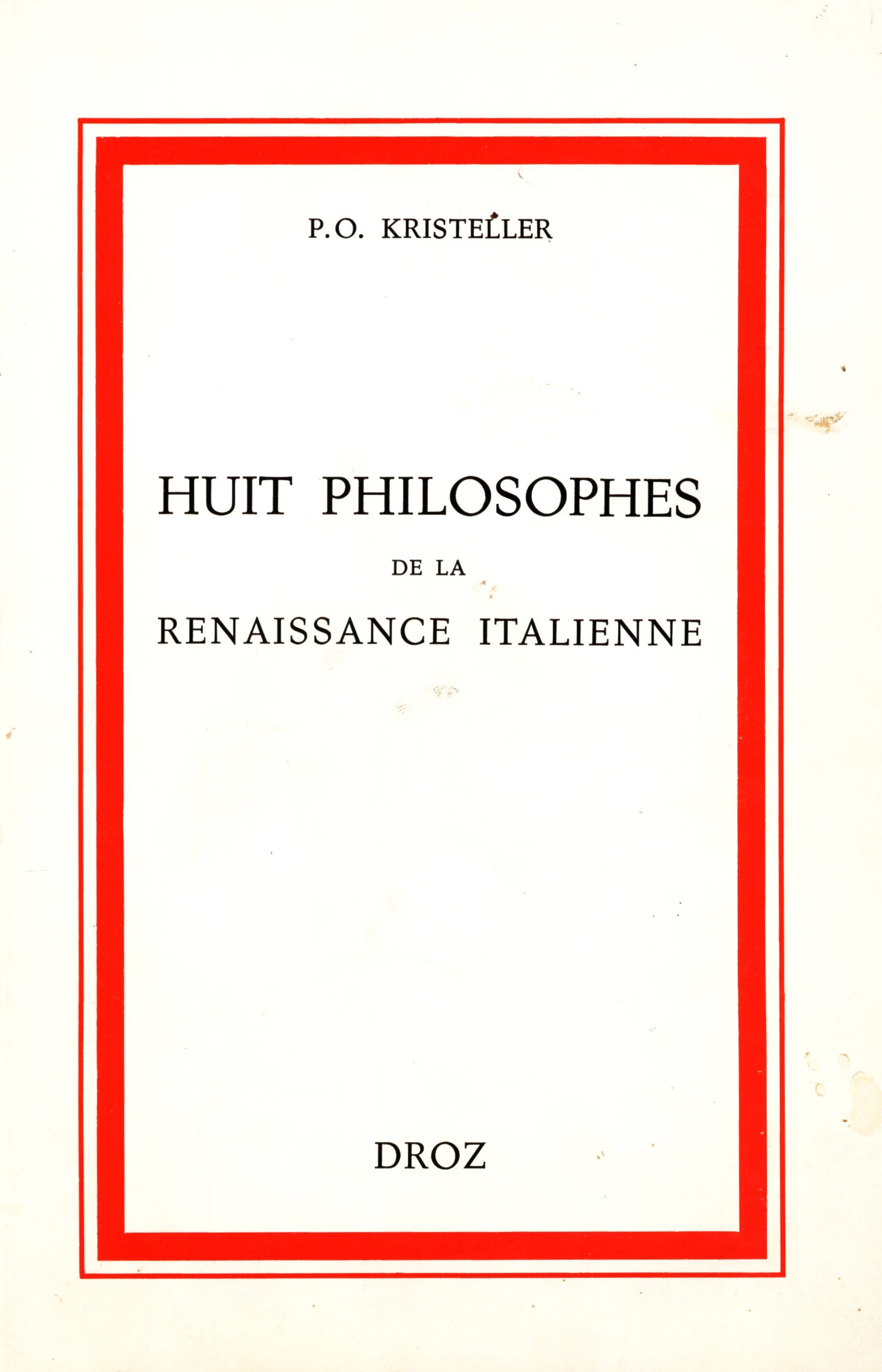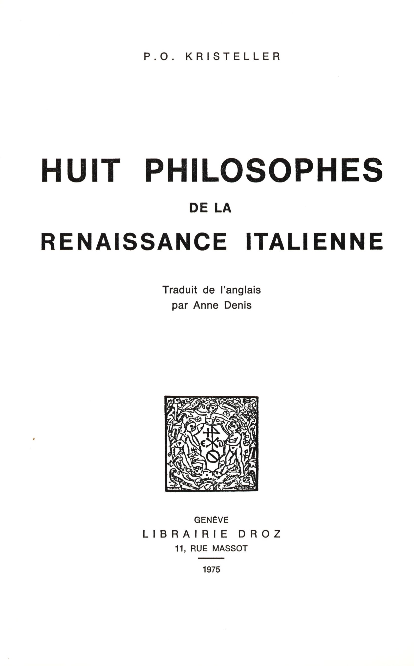 Názvové údaje Huit philosophes de la renaissance italienne / P. O. Kristeller ; Traduit de l'anglais par Anne Denis Osobní jméno Kristeller, Paul Oskar, 1905-1999 (Autor) Další autoři Librairie Droz (Ženeva) (Nakladatel, vydavatel) Nakladatel Geneve : Librairie Droz, 1975 Výrobce Corcelles : Perrin + Perret S.á.r.l. Rozsah 164 stran ; 23 cm ISBN (vázáno) Edice Travaux d´histoire éthico-politique ; XXX