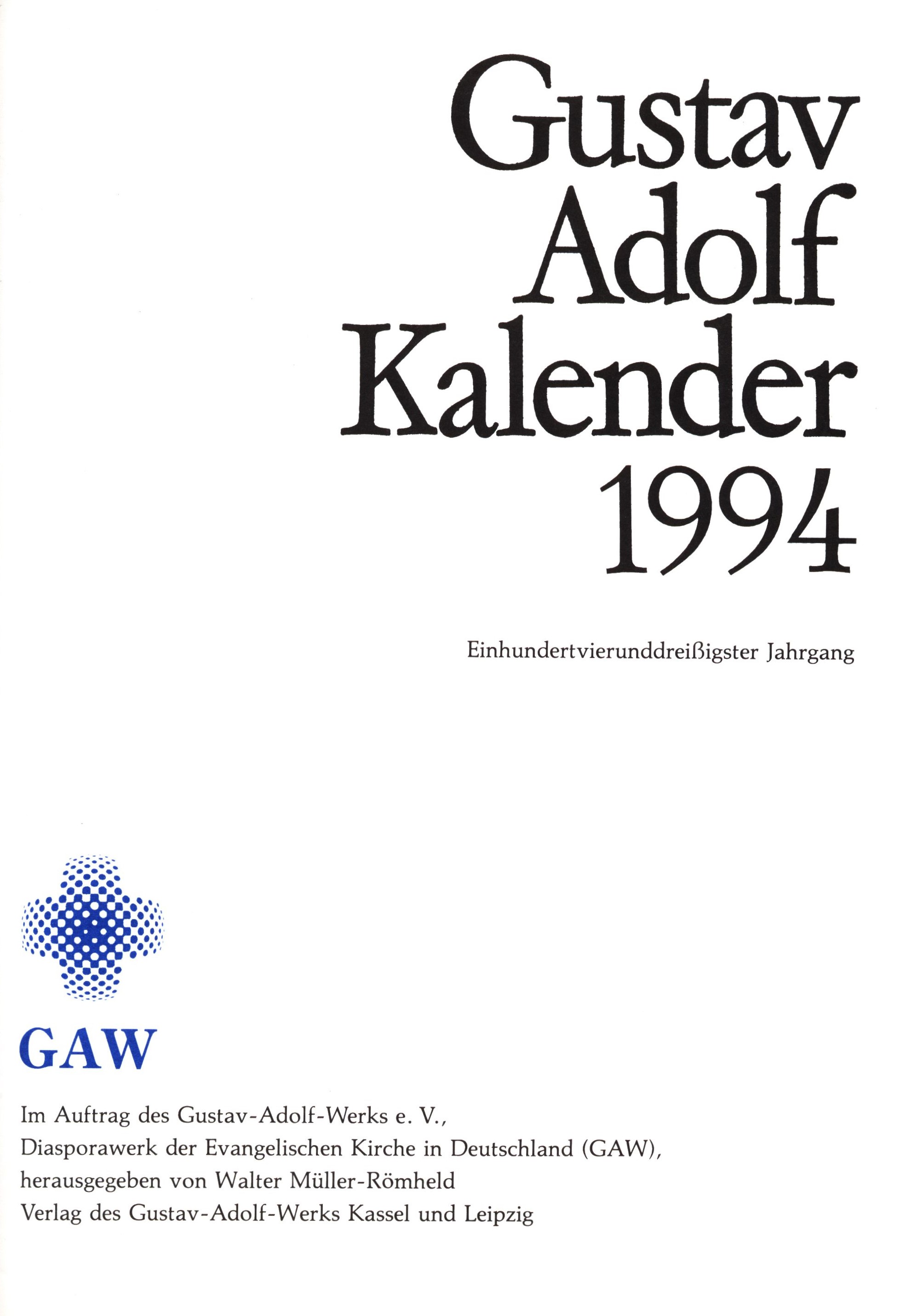 $a Gustav Adolf Kalender 1994 : $b Einhundertvierunddreissigster Jahrgang 264 -1