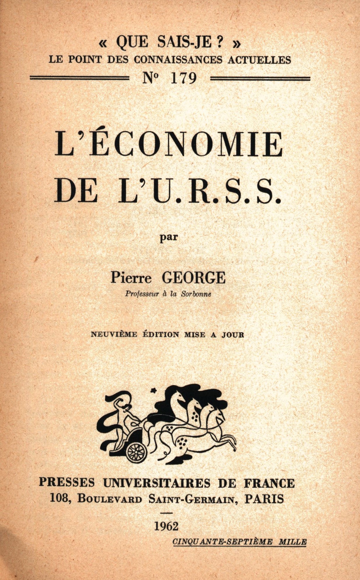 Názvové údaje L'économie de l'U. R. S. S. / Pierre George Osobní jméno George, Pierre, 1909-2006 (Autor) Další autoři Presses Universitaires de France (nakladatelství) (Nakladatel, vydavatel) (Tiskař) Údaje o vydání 9e Nakladatel Paris : Presses Universitaires de France, 1962 Rozsah 126 stran : čb. ilustrace ; 18 cm ISBN (Vázáno) Edice Que sais-je?, (Presses Universitaires de France) ; N° 179