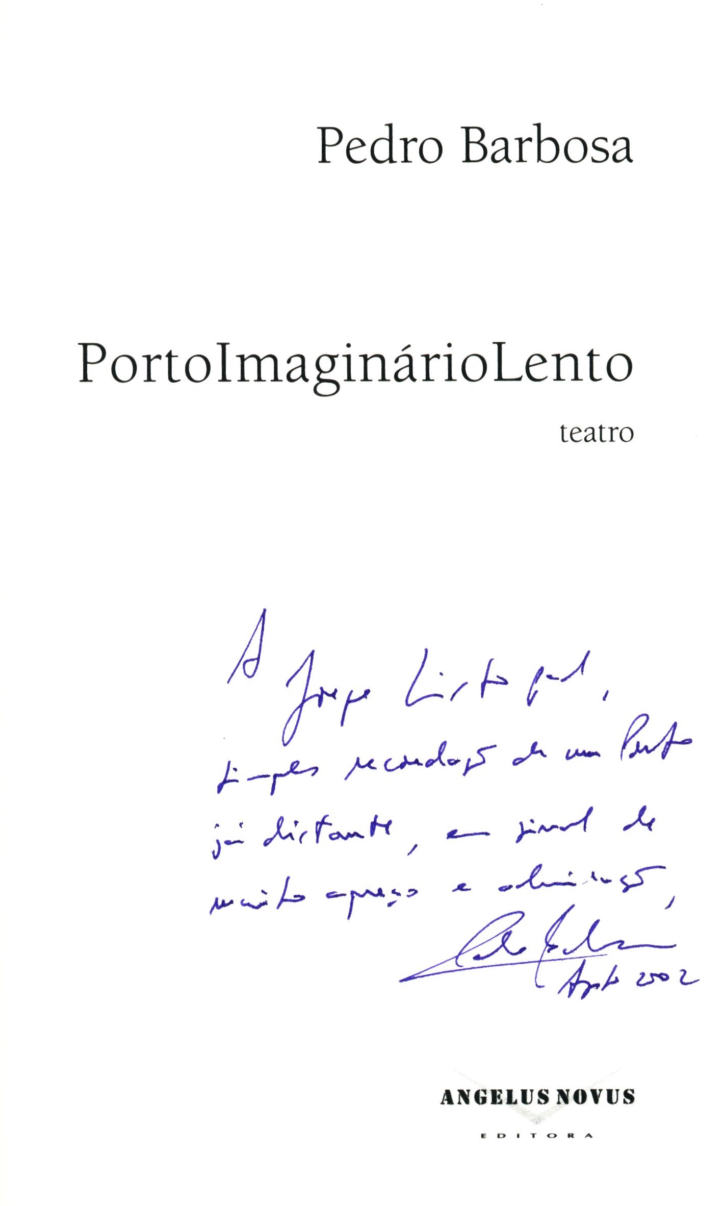 Názvové údaje Porto imaginário lento : teatro / Pedro Barbosa Osobní jméno Barbosa, Pedro, 1950- (Autor) Další autoři Angelus Novus, Lda (Nakladatel, vydavatel) Gráfica de Coimbra, Lda (Tiskař) Nakladatel Braga : Angelus Novus, Lda, [2001] Výrobce Gráfica de Coimbra, Lda Copyright ©2001 Rozsah 104 stran : čb. ilustrace ; 21 cm ISBN 972-8115-65-2 (brožováno) Země vyd. Portugalsko Jazyk dok. portugalština Poznámky Zdobená obálka