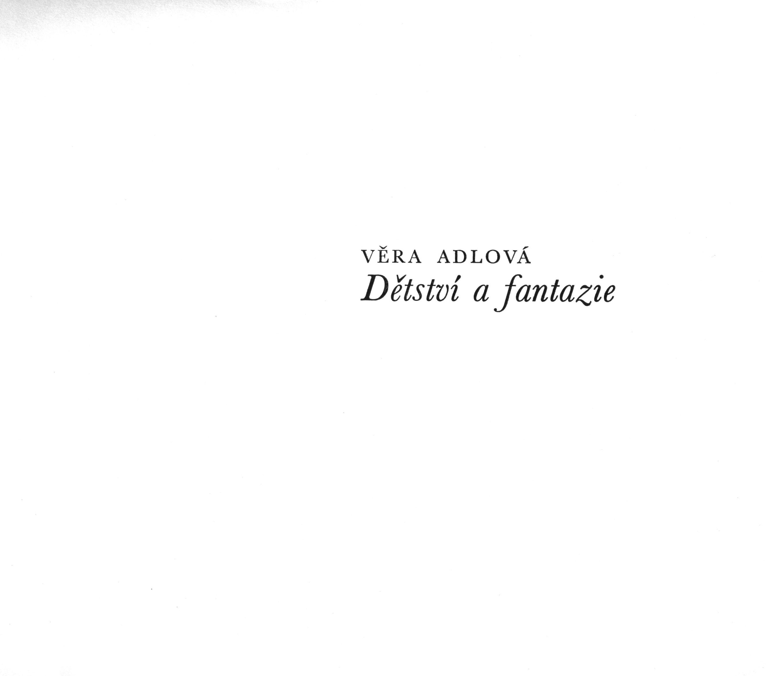 1. Názvové údajeDětství a fantazie / Věra Adlová ; kresby a barevná příloha Miloslav Troup ; grafická úprava Zdeněk Kudělka