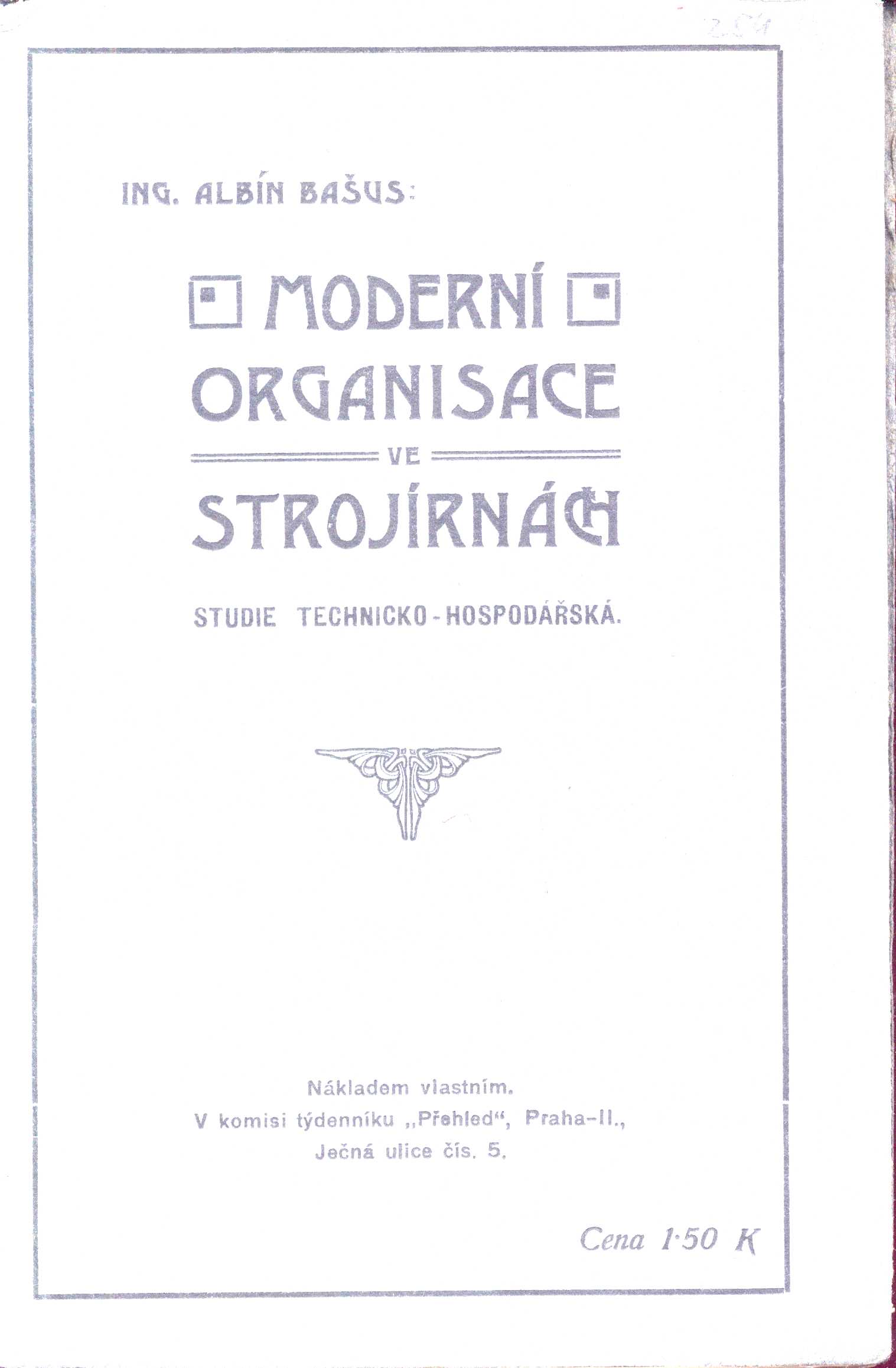 1. Názvové údajeModerní organisace ve strojírnách : studie technicko-hospodářská / napsal Ing. Albín Bašus