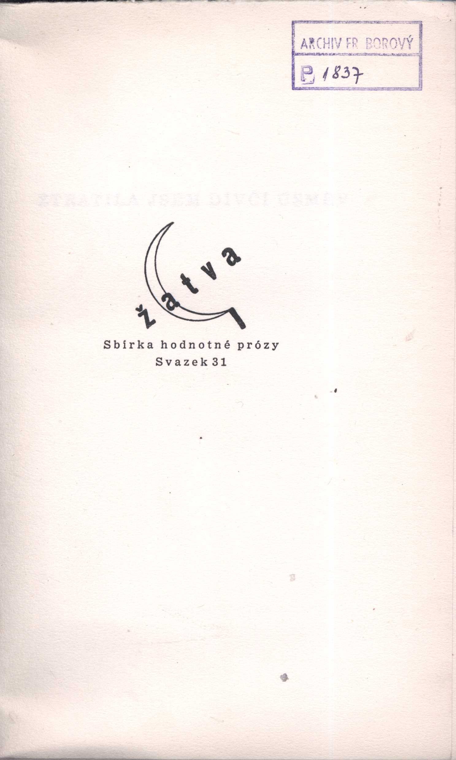 1. Názvové údajeZtratila jsem dívčí úsměv : [román] / Jane Allen ; [z angličtiny přeložil Vl. Hrnčíř ; obálka podle návrhu E. Miléna]