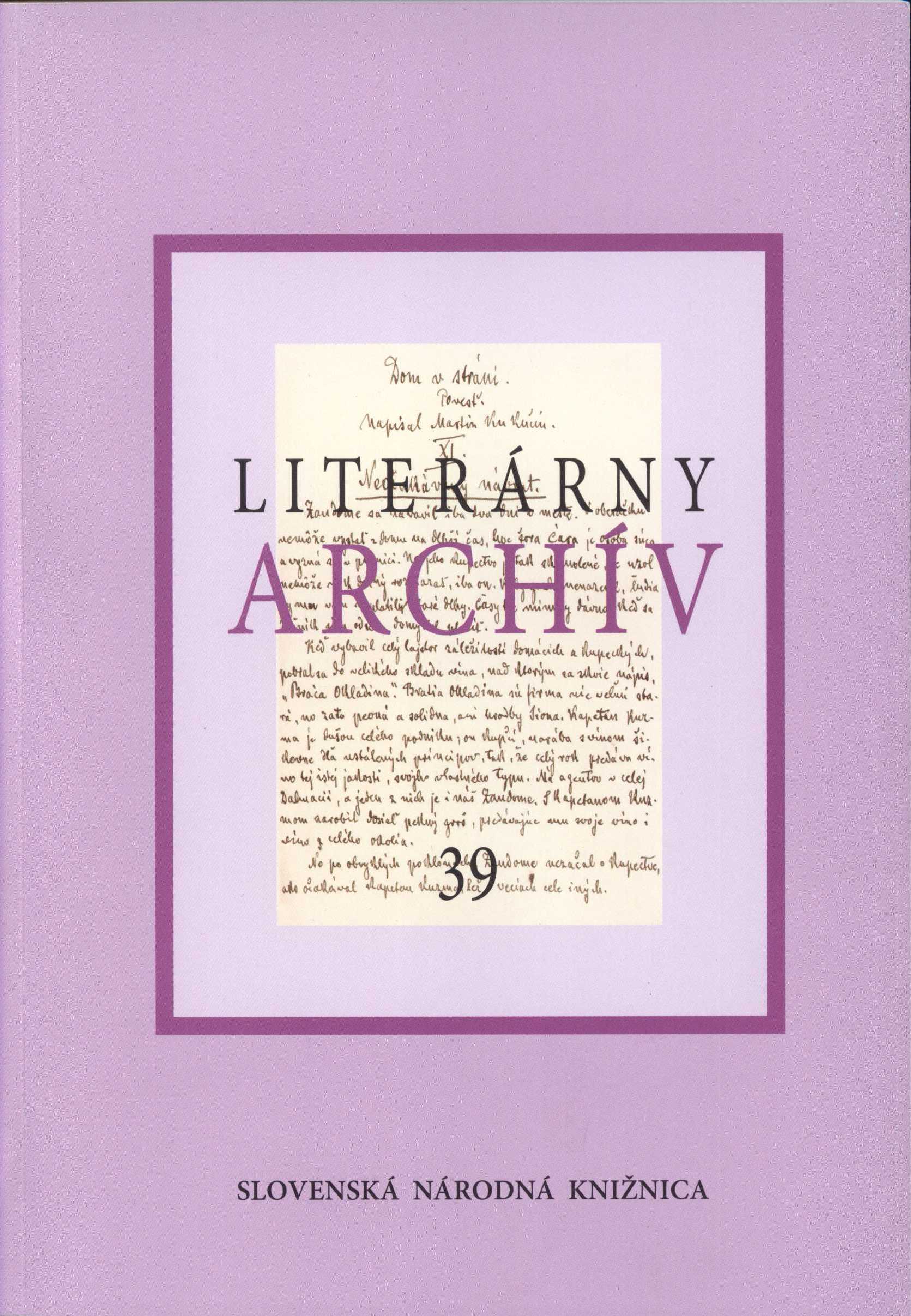 2. Názvové údajeLiterárny archív : zborník venovaný 60. výročiu založenia Literárneho archívu