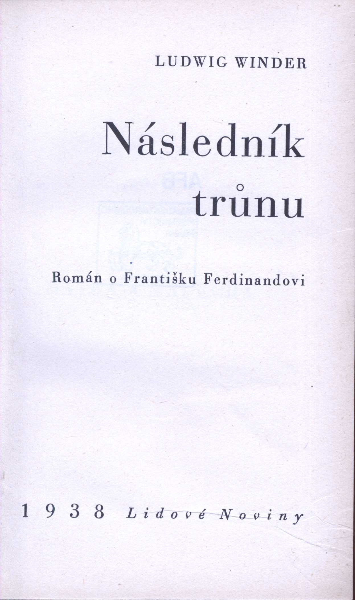 2. Názvové údajeNásledník trůnu : román o Františku Ferdinandovi / Ludwig Winder ; [úprava a vazba Ed. Milén]
