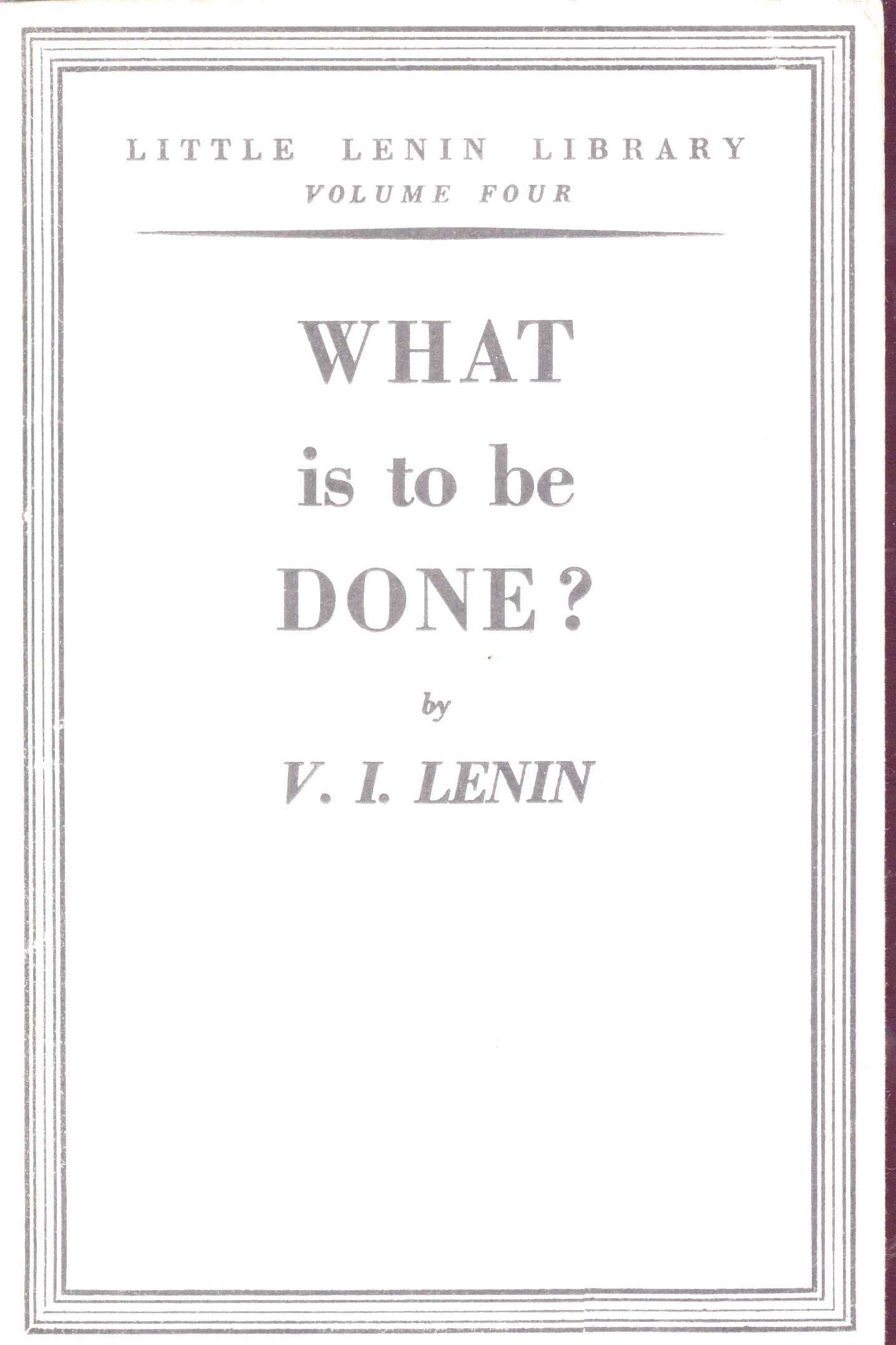 1. Názvové údajeWhat is to be done? : Burning Questions of Our Movement / by V. I. Lenin