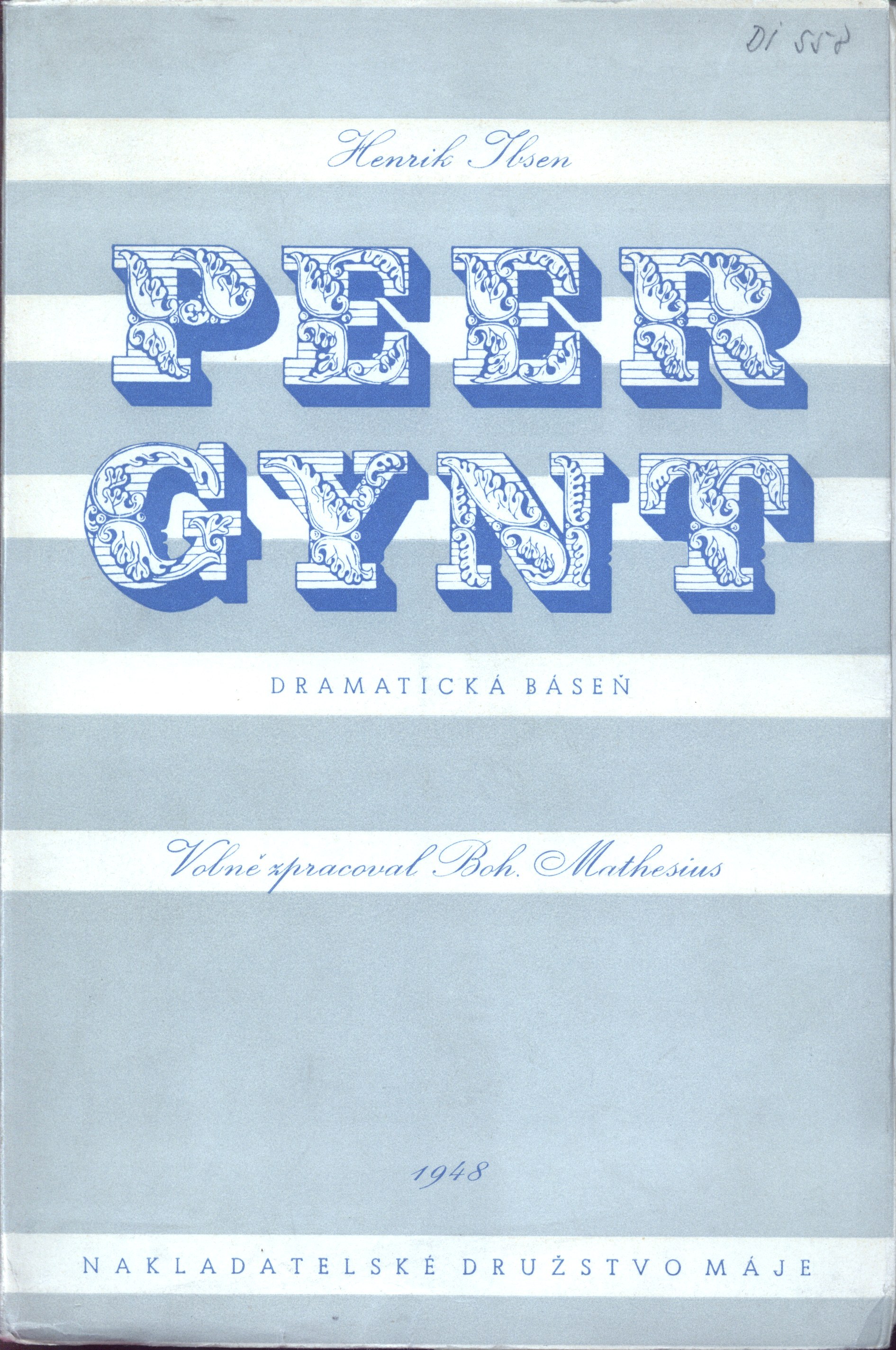 Názvové údajePeer Gynt : dramatická báseň o deseti obrazech / Henrik Ibsen ; volně zpracoval [a doslovem opatřil] Boh[umil]. Mathesius ; [s obálkou Josefa Prchala]