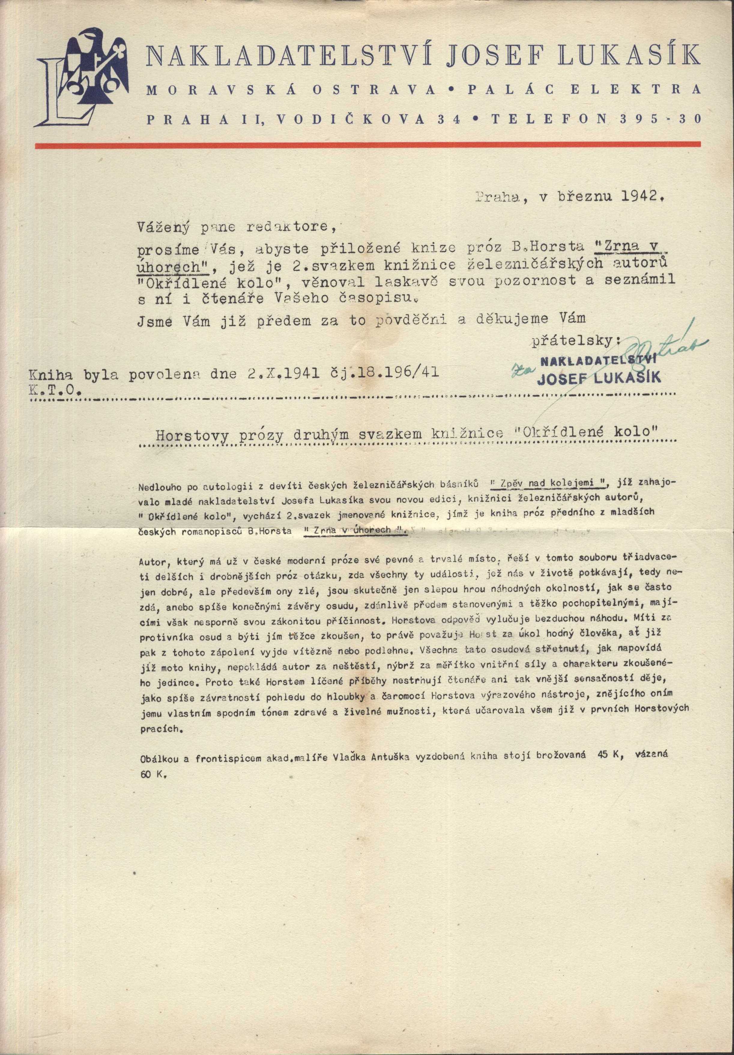 NakladatelMoravská Ostrava ; Praha : Josef Lukasík, 1941