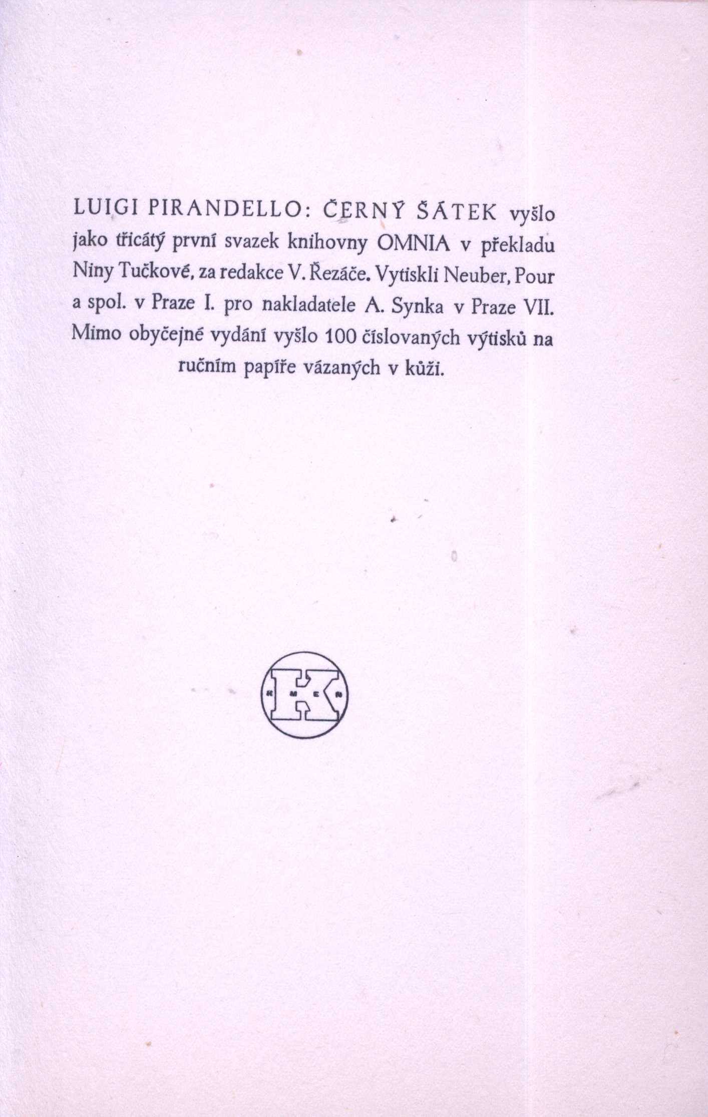 1. Názvové údajeČerný šátek / Luigi Pirandello ; přeložila Nina Tučková