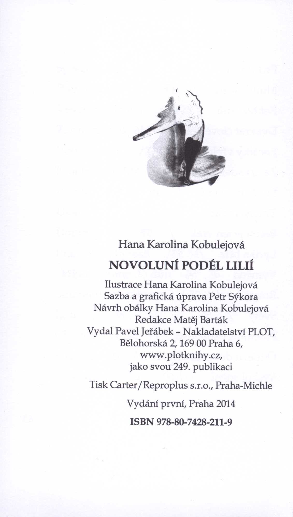 1. Názvové údajeNovoluní podél lilií / Hana Karolina Kobulejová ; ilustrace Hana Karolina Kobulejová ; sazba a grafická úprava Petr Sýkora ; návrh obálky Hana Karolina Kobulejová