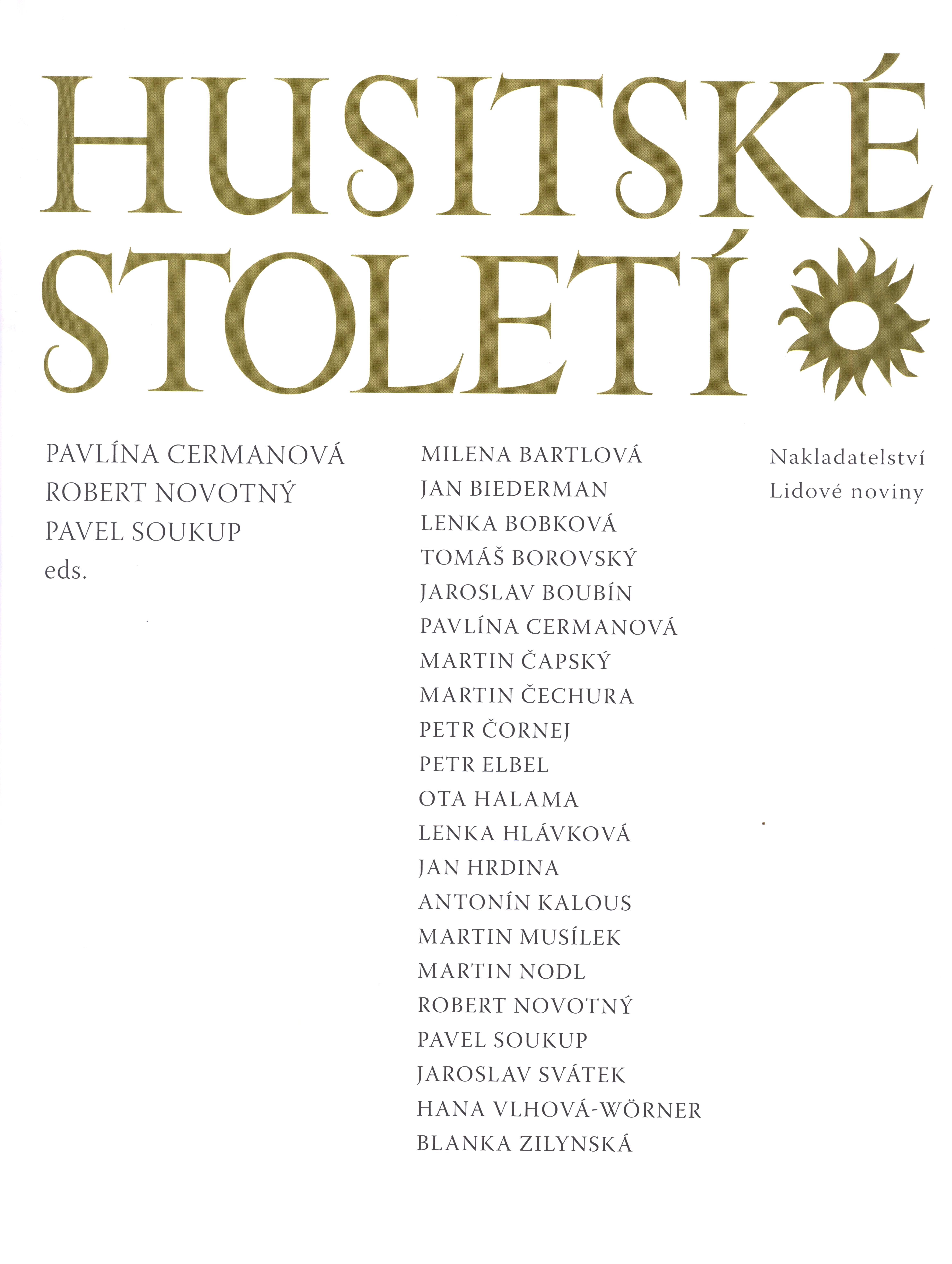 1. Názvové údajeHusitské století / Pavlína Cermanová, Robert Novotný, Pavel Soukup eds. ; Milena Bartlová ... [et al.] ; [obálku a titulní list navrhl Vladimír Vimr ; knihu graficky upravila Bohuna Broumová ; rejstřík zpracoval Vojtěch Bažant ; resumé přeložil do angličtiny Sean Mark Miller]