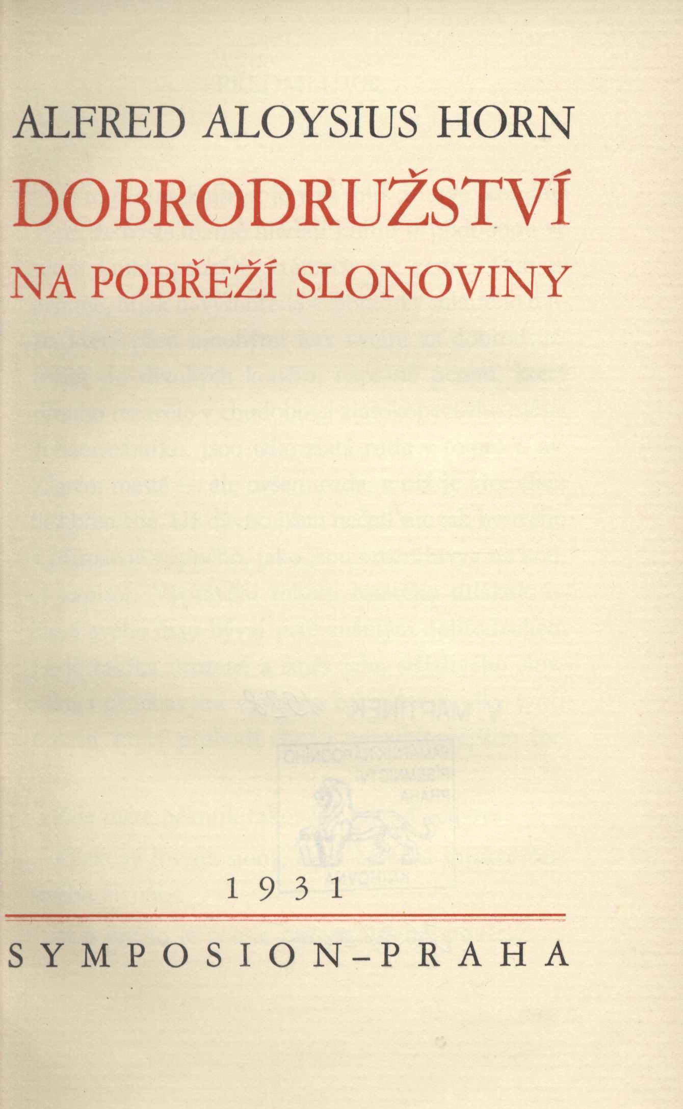 1. Názvové údajeDobrodružství na Pobřeží Slonoviny / Alfred Aloysius Horn ; [přeložil B. Z. Nekovařík ; vazbu navrhla Toyen]