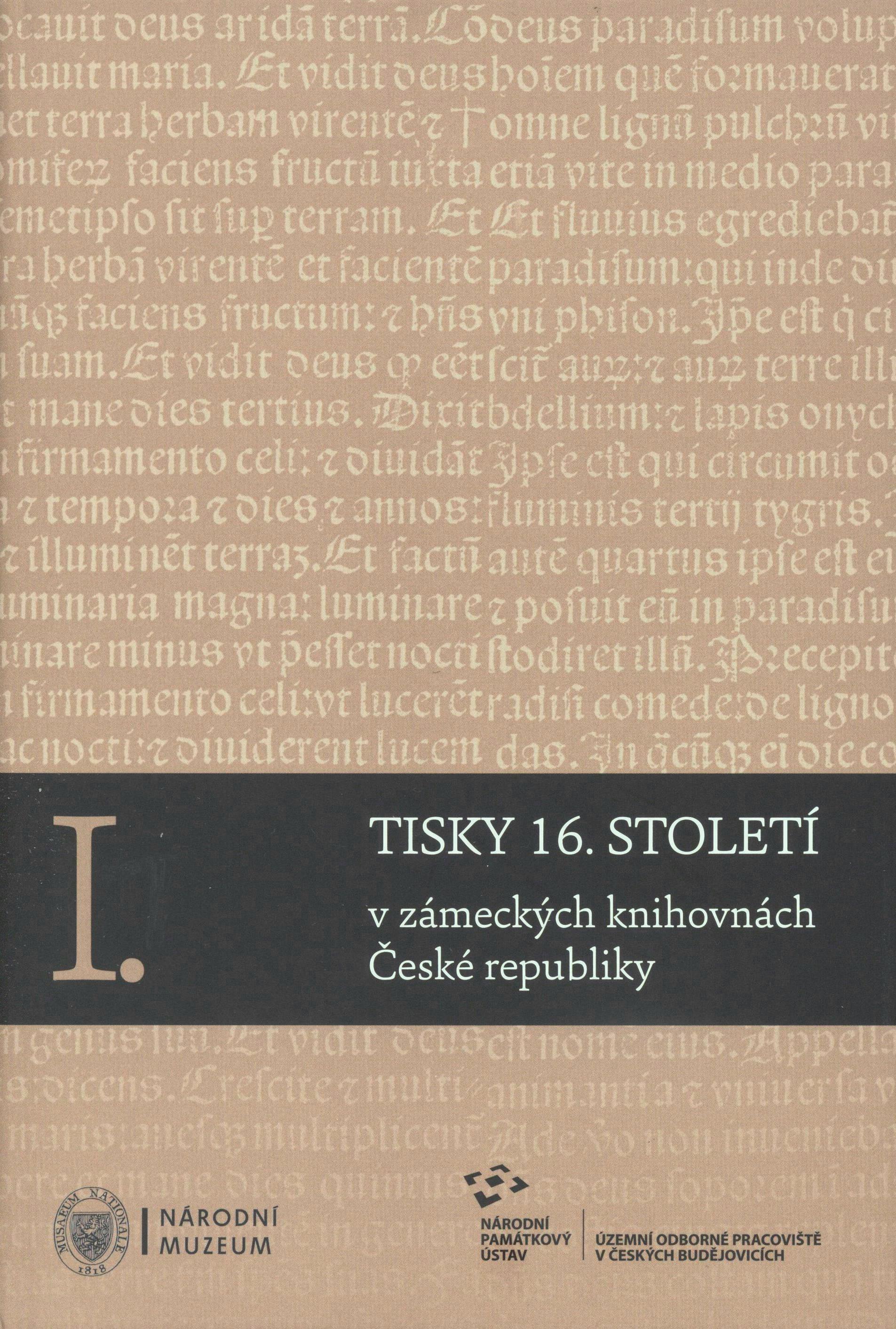 1. Názvové údajeTisky 16. století v zámeckých knihovnách České republiky. I. / Petr Mašek ... [et al.] ; [uspořádal Pavel Hájek ; grafická úprava a sazba, obálka Daniel Dědek]